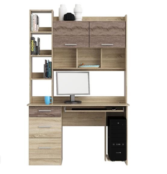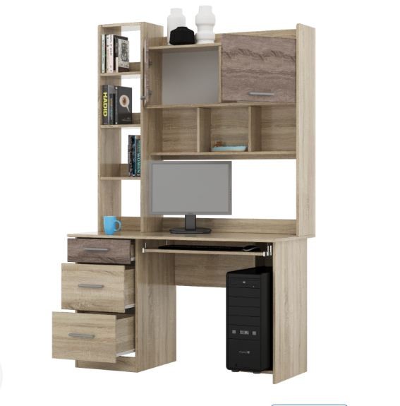 Выдвижная полочка для клавиатуры оснащена телескопическими направляющими, которые отличаются длительным сроком службы. Для системного блока предусмотрена подставка, которая значительно уменьшит попадание пыли внутрь. Материал - ДСП Доступно в цвете - дуб сонома/трюфель, венге темный/дуб молочный Размеры: (ШхВхГ) - 1250х1966х600 мм. Мебель доставляется в разобранном виде в фабричной упаковке. В комплекте фурнитура для сборки, схема изделия. Отверстия для сборки просверлены.