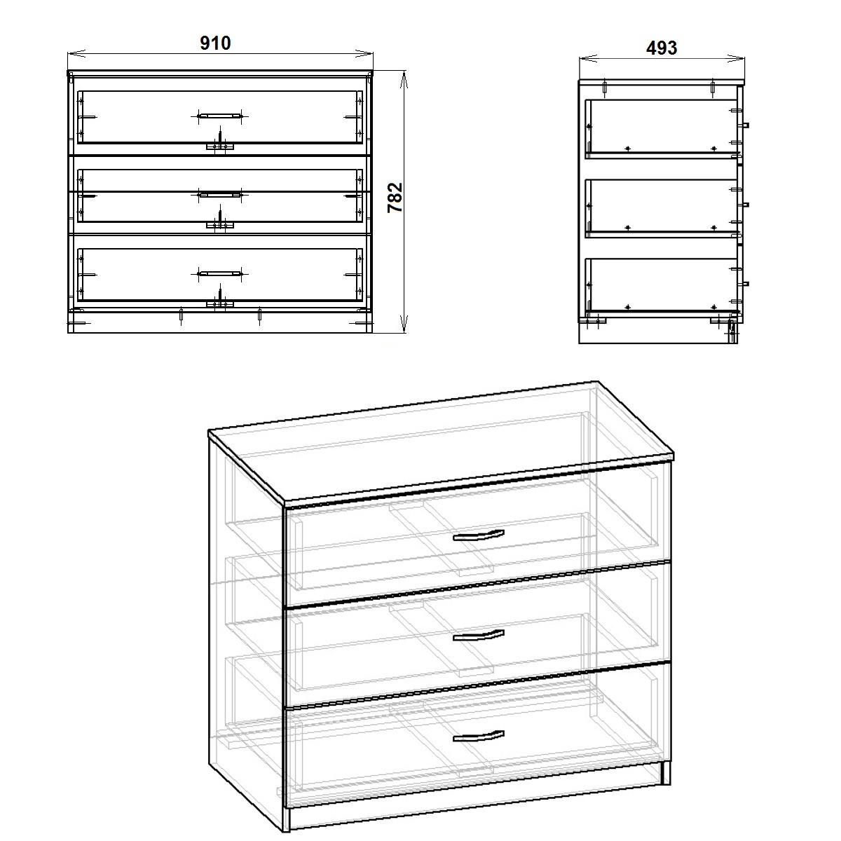 Габаритные размеры: Ширина: 910 мм. Высота: 782 мм. Глубина: 493 мм. Материал: ламинированное ДСП. Цвет ДСП: Бук, Венге, Ольха, Орех Экко, Яблоня, Дуб Сонома, Нимфея Альба.