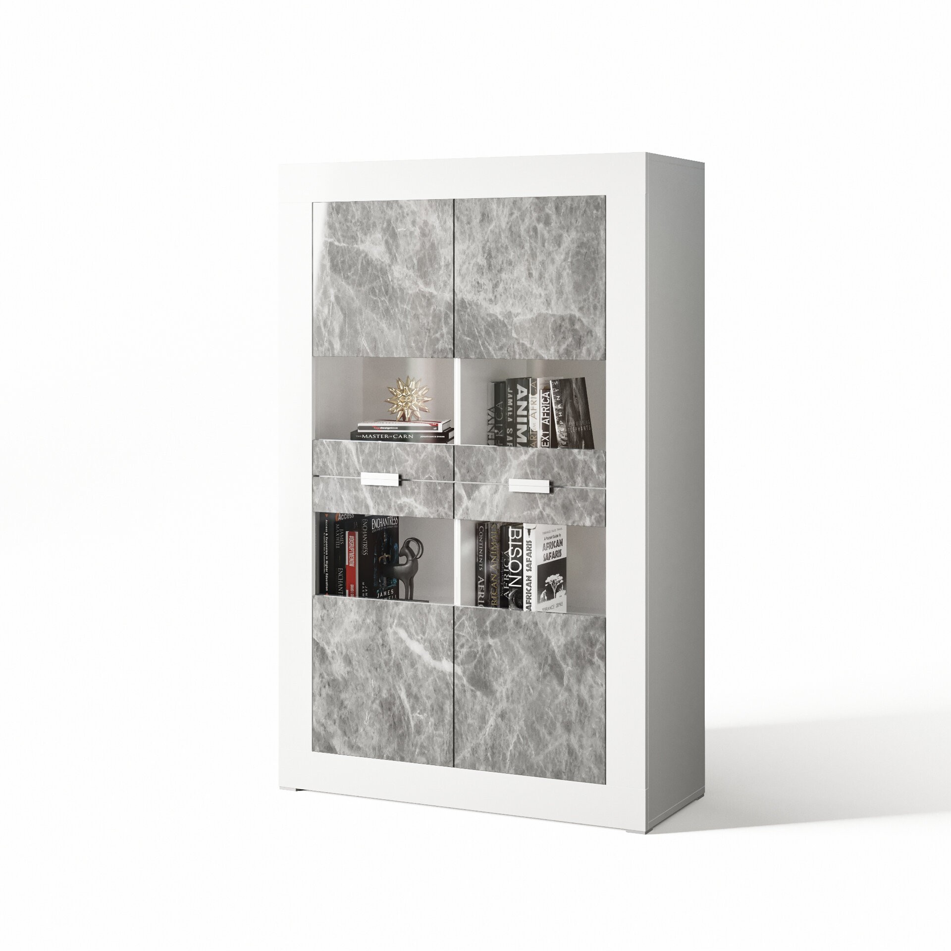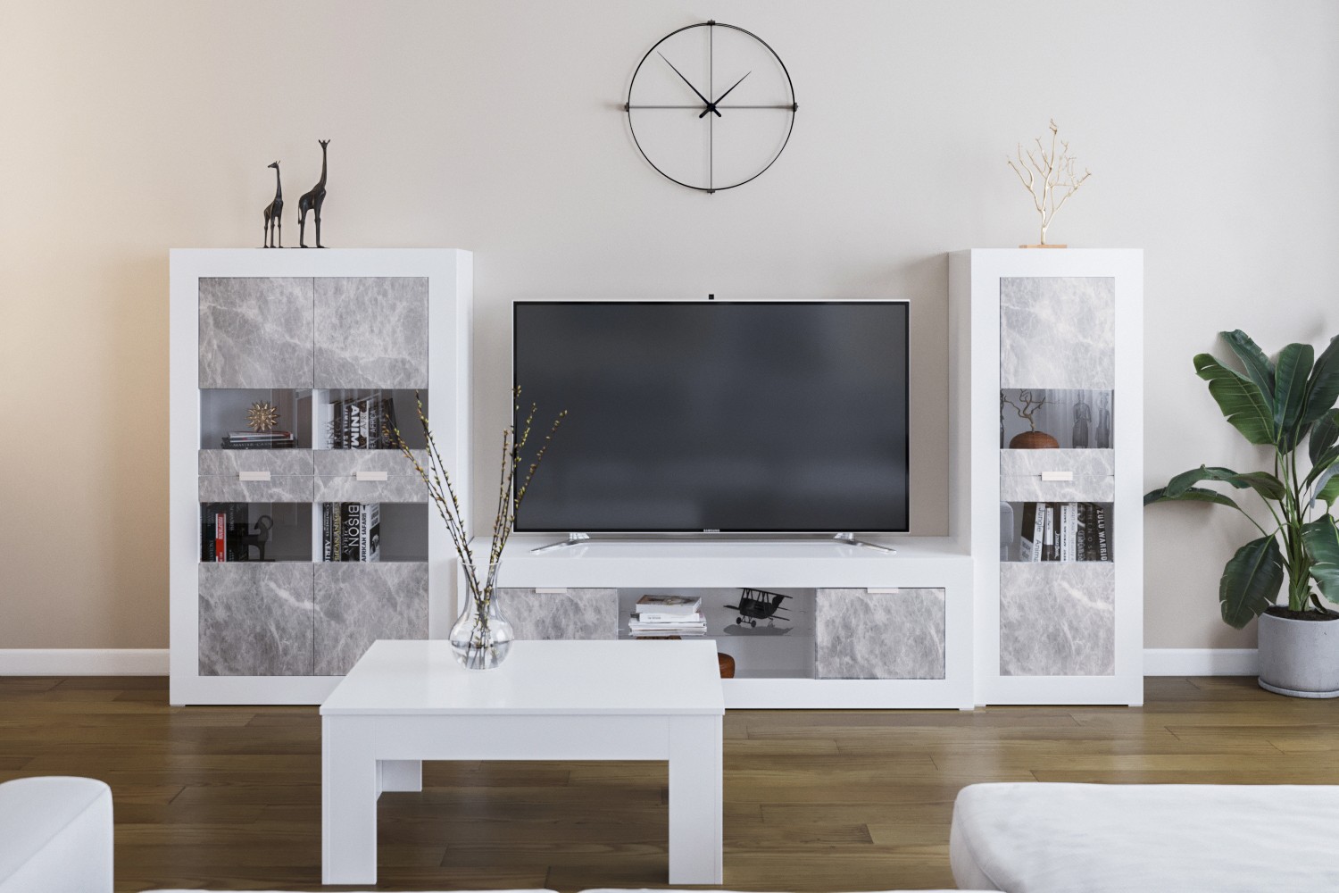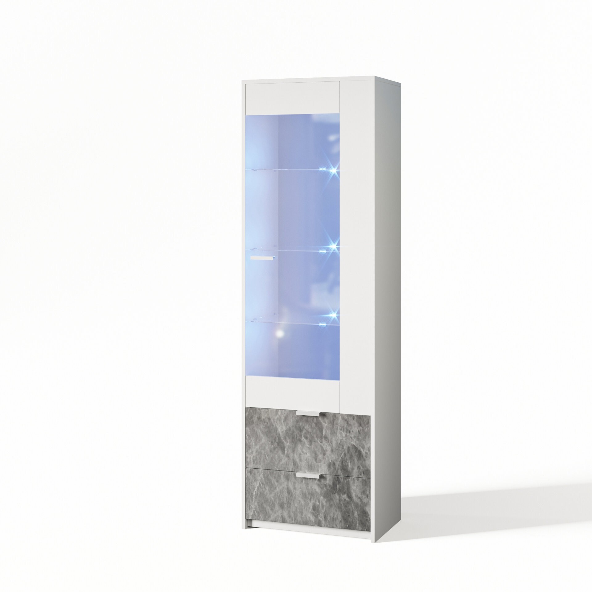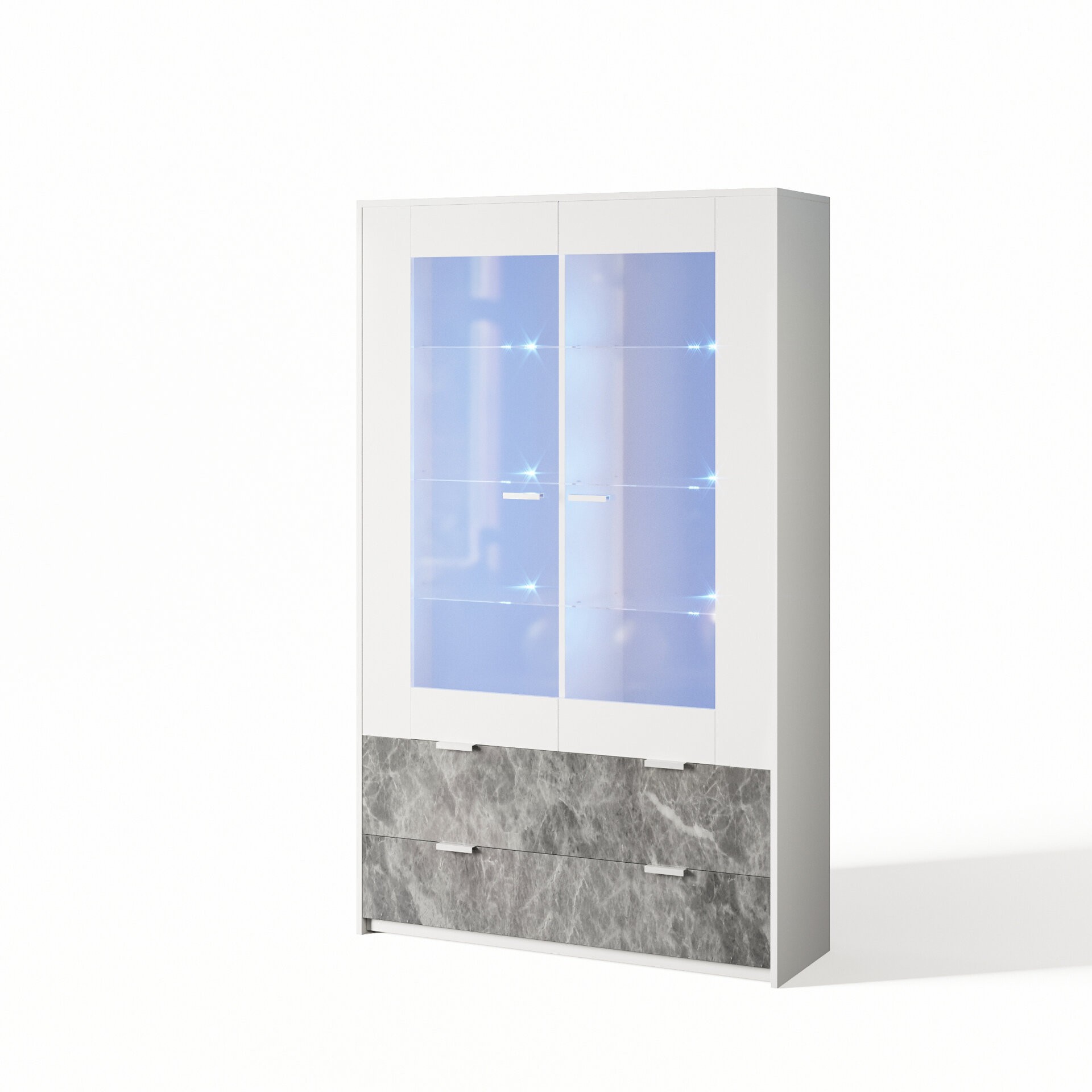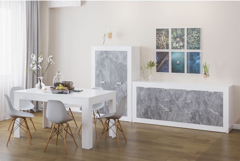 Гостиная ПРАГА СВІТ МЕБЛІВ – комплект мебели в гостиную модульной системы Praga Svit Mebliv от фабрики «Мир мебели – Украина». Изготавливается из лакированной ДСП в эффектном сочетании двух контрастных оттенков: корпус – белый; фасад – индастриал. Характеризуется лаконичным дизайном, массивными боковыми стенками и удобными пластиковыми ручками. Витрины оснащены вставками из прозрачного стекла.