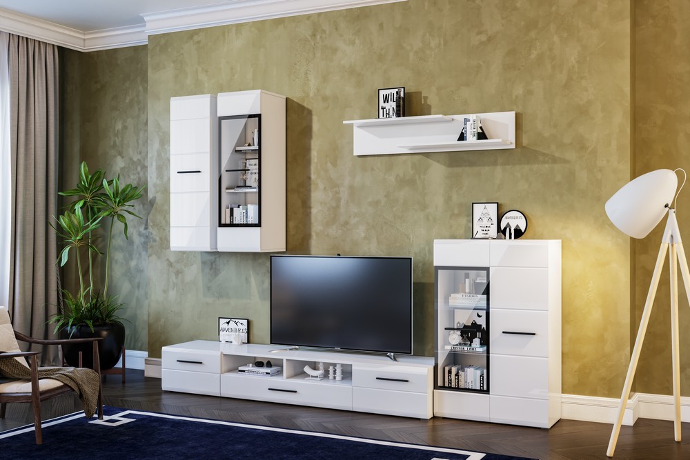 Гостиная ТОКИО СВІТ МЕБЛІВ – практичный комплект в гостиную Tokyo Svit Mebliv Украина». Корпус изготавливается из ДСП в белом цвете, фасад – МДФ белый глянец.