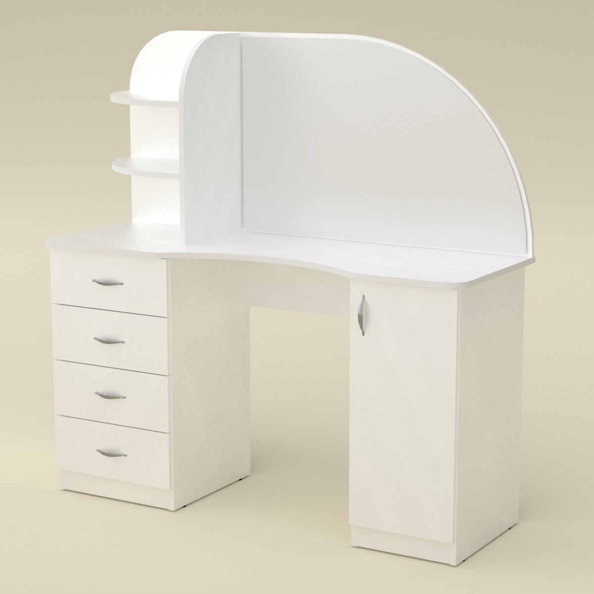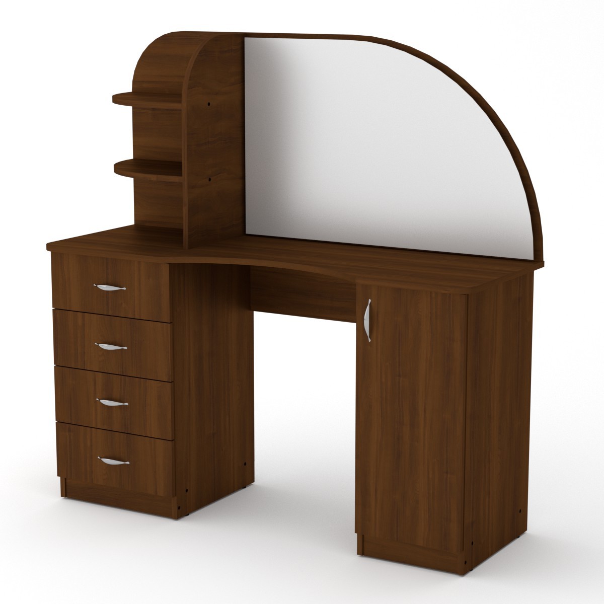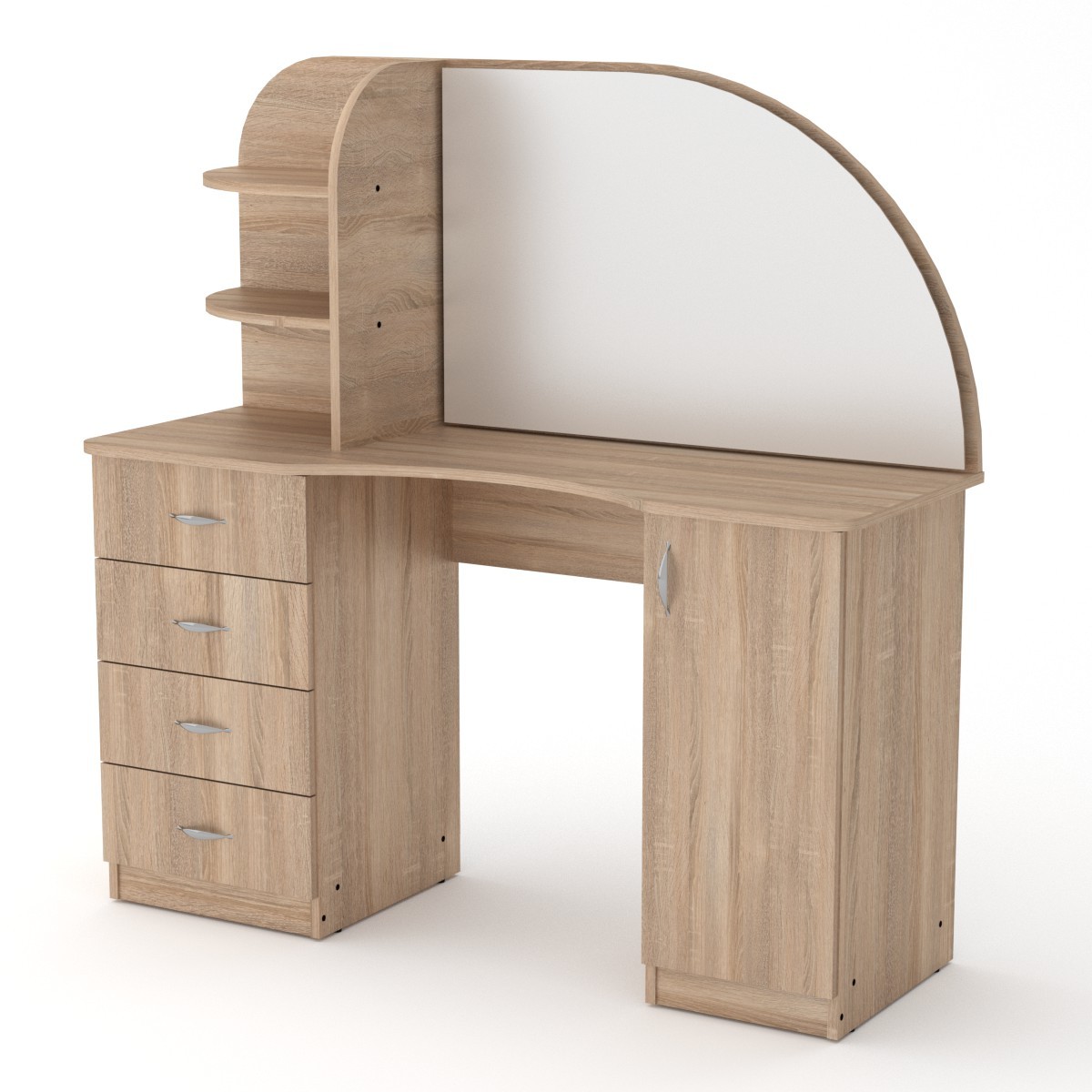 Трюмо-6Четыре выдвижных ящика, вместительная тумбочка и три открытых полки - это Трюмо-6 от «Компанит». Особенность модели - красивое зеркало закруглённой формы, которая перекликается с геометрией полок. Простая конструкция, качественная фурнитура и сдержанный стиль. Материал - ламинированная ДСП, которая производится по современным технологиям и абсолютно безопасна для здоровья. Благодаря широкой палитре оттенков, к трюмо довольно просто подобрать мебель в комплект, к тому же оно подойдет практически под любой интерьер. Габаритные размеры: Ширина: 1300 мм. Высота: 1300 мм. Глубина: 460 мм. Материал: ламинированное ДСП. Цвет ДСП: Бук, Венге, Ольха, Орех Экко, Яблоня, Дуб Сонома, Нимфея Альба. Мебель доставляется в разобранном виде в плоских картонных упаковках, упакованная фабрикой производителем. В комплектацию входит фурнитура, крепёж, инструкция по сборке.