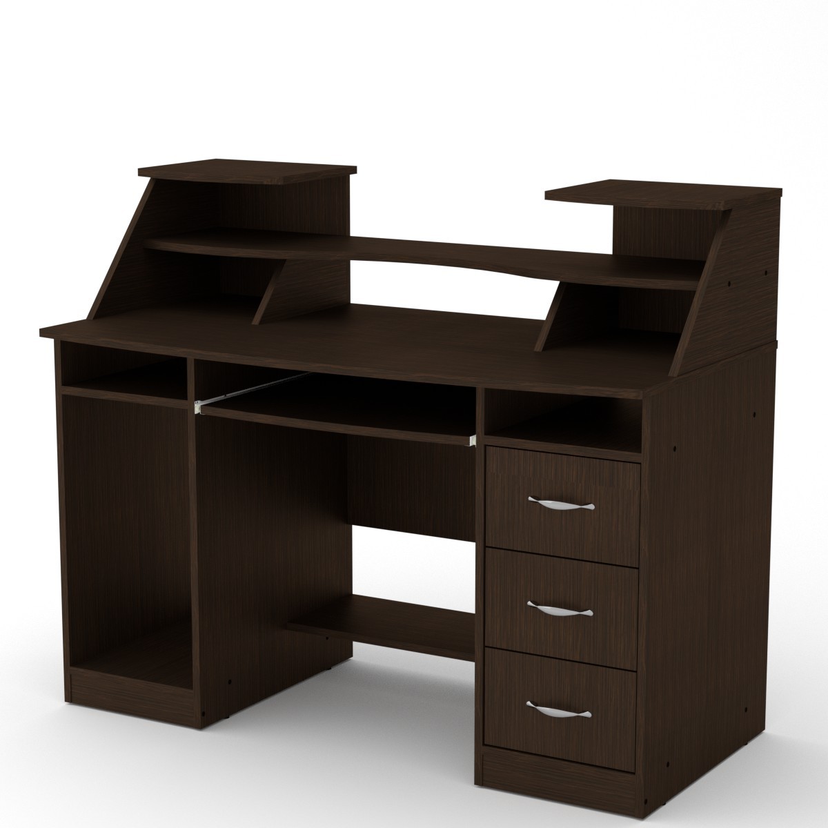 Комфорт-5Компьютерные столы КОМПАНИТ предназначены для жилых помещений и офисов. Разнообразные модели компьютерных столов различных размеров и комплектации созданы, чтобы наилучшим образом вписаться в вашу комнату, детскую или рабочий кабинет. С помощью компьютерных столов КОМПАНИТ можно быстро организовать эргономичную рабочую зону в офисе. В зависимости от модели, столы оборудованы выдвижными ящиками, полками и шкафами. Предусмотрено место для системного блока и монитора. Выдвижная плоскость для клавиатуры позволяет сэкономить место на письменном столе. Разнообразие цветов популярных пород дерева позволит выбрать стол, соответствующий интерьеру помещения. Габаритные размеры: Ширина: 1268 мм. Высота: 756 + 282 мм. Глубина: 650 мм. Материал: ламинированное ДСП. Цвет ДСП: Бук, Венге, Ольха, Орех Экко, Яблоня, Дуб Сонома, Нимфея Альба. Мебель доставляется в разобранном виде в плоских картонных упаковках, упакованная фабрикой производителем. В комплектацию входит фурнитура, крепёж, инструкция по сборке.