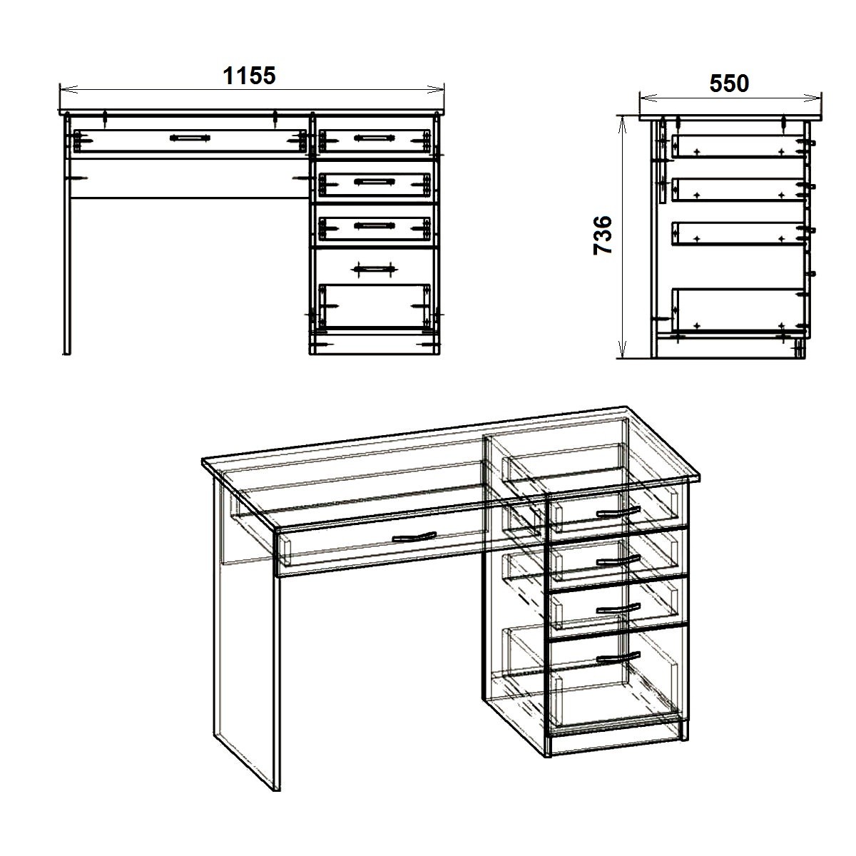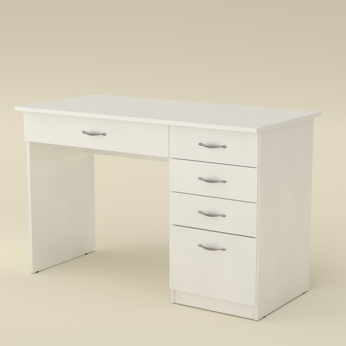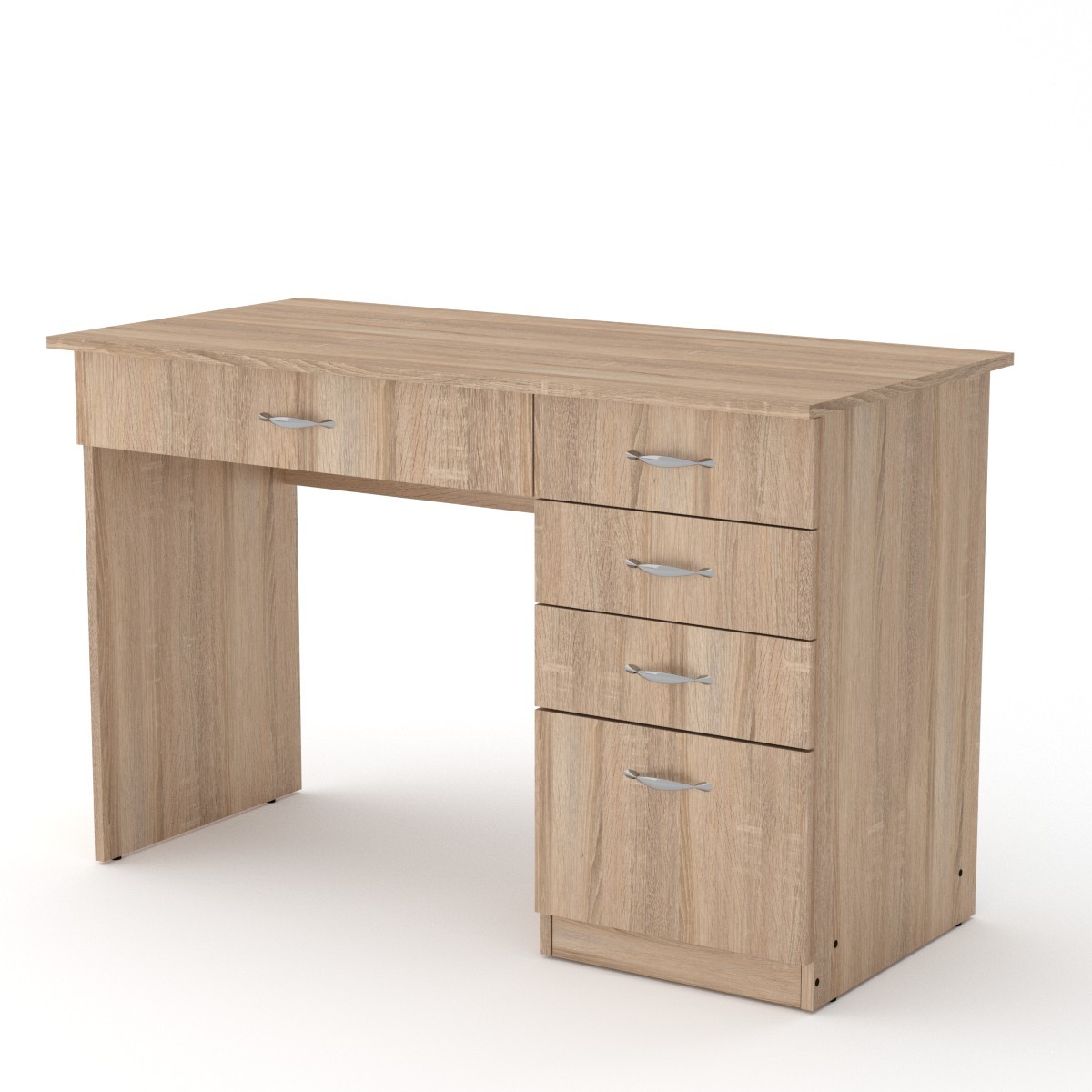 Студент ABCПисьменный стол – это обязательный предмет мебели и для ребенка, и для взрослого. Дошкольнику стол необходим для обучения азам грамоты, рисования, лепки из пластилина и других занятий по развитию моторики. Школьник пользуется письменным столом на протяжении 11 лет обучения. В ящиках стола должны размещаться учебники и тетради, альбомы и принадлежности для творчества. Для старшеклассников и студентов, возможно, письменный стол уступит место в комнате компьютерному. В любом случае, ассортимент моделей в различных цветах ламинированного ДСП позволит купить письменный стол, который наилучшим образом подходит для вашего интерьера. Габаритные размеры: Ширина: 1155 мм. Высота: 736 мм. Глубина: 550 мм. Материал: ламинированное ДСП. Цвет ДСП: Бук, Венге, Ольха, Орех Экко, Яблоня, Дуб Сонома, Нимфея Альба.