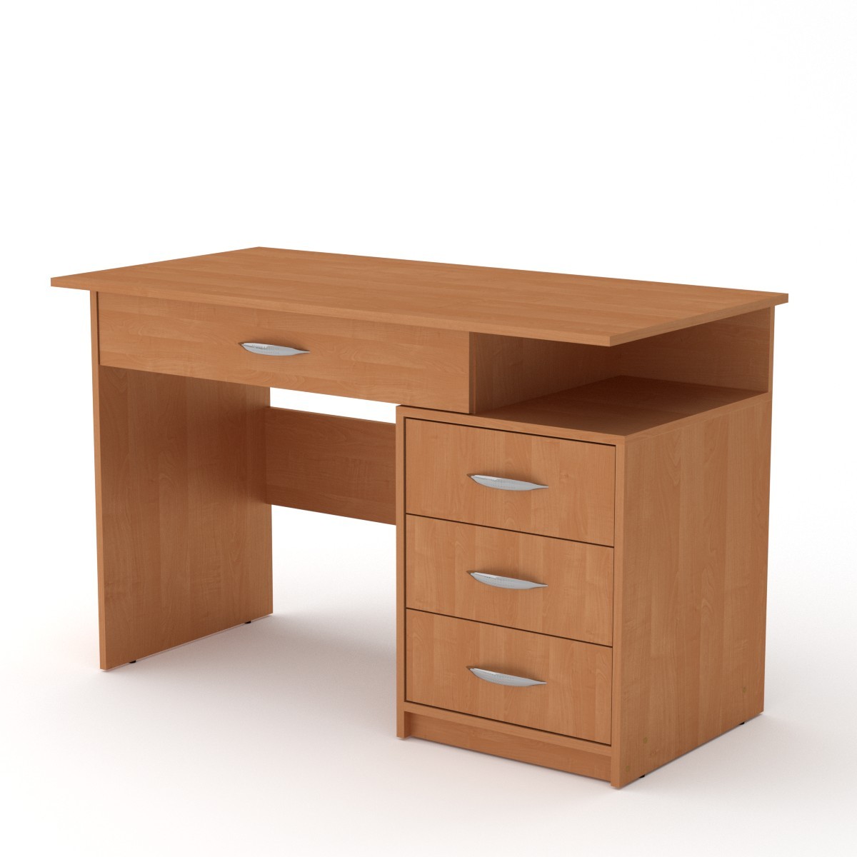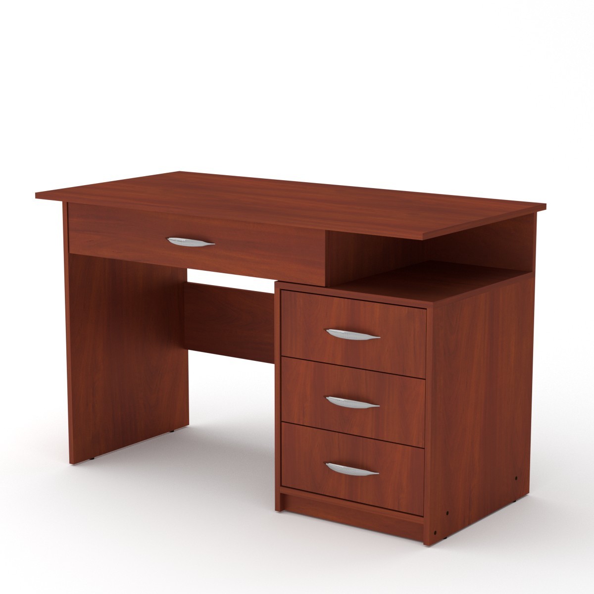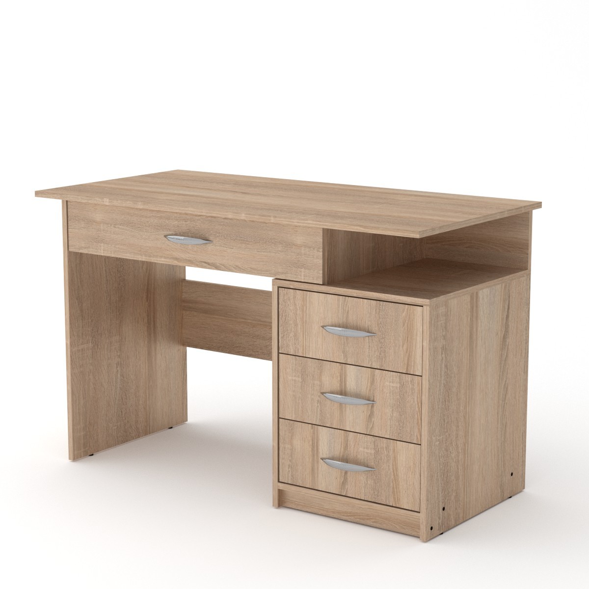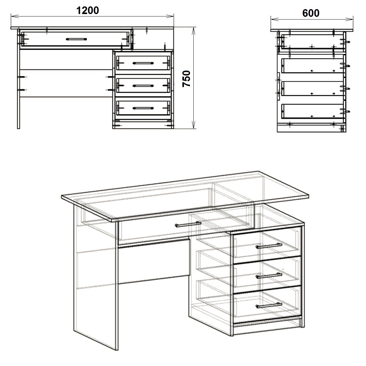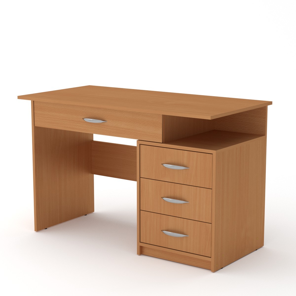 Студент-2Письменный стол – это обязательный предмет мебели и для ребенка, и для взрослого. Дошкольнику стол необходим для обучения азам грамоты, рисования, лепки из пластилина и других занятий по развитию моторики. Школьник пользуется письменным столом на протяжении 11 лет обучения. В ящиках стола должны размещаться учебники и тетради, альбомы и принадлежности для творчества. Для старшеклассников и студентов, возможно, письменный стол уступит место в комнате компьютерному. В любом случае, ассортимент моделей в различных цветах ламинированного ДСП позволит купить письменный стол, который наилучшим образом подходит для вашего интерьера. Габаритные размеры: Ширина: 1200 мм. Высота: 750 мм. Глубина: 600 мм. Материал: ламинированное ДСП. Цвет ДСП: Бук, Венге, Ольха, Орех Экко, Яблоня, Дуб Сонома, Нимфея Альба. Мебель доставляется в разобранном виде в плоских картонных упаковках, упакованная фабрикой производителем. В комплектацию входит фурнитура, крепёж, инструкция по сборке.