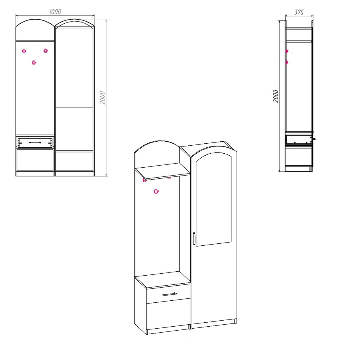 Лидия (Компанит)Чтобы аккуратно поместить верхнюю одежду и обувь, поставить сумки и зонты необходима компактная мебель для прихожей. Купить прихожую для дома или квартиры вы можете в компании КОМПАНИТ. Вашему вниманию разнообразные модели прихожих, выполненных из ламинированного ДСП в популярных цветах дерева. Прихожие имеют различную конфигурацию и габариты, чтобы вы смогли выбрать идеальный вариант для хранения необходимого объема вещей. Вешалки и полки, зеркало, выдвижные ящики и скрытые шкафчики, — теперь все вещи будут на своих местах. Габаритные размеры: Ширина: 1000 мм. Высота: 2000 мм. Глубина: 375 мм. Материал: ламинированное ДСП. Цвет ДСП: Бук, Венге, Ольха, Орех Экко, Яблоня, Дуб Сонома, Нимфея Альба. Мебель доставляется в разобранном виде в плоских картонных упаковках, упакованная фабрикой производителем. В комплектацию входит фурнитура, крепёж, инструкция по сборке.