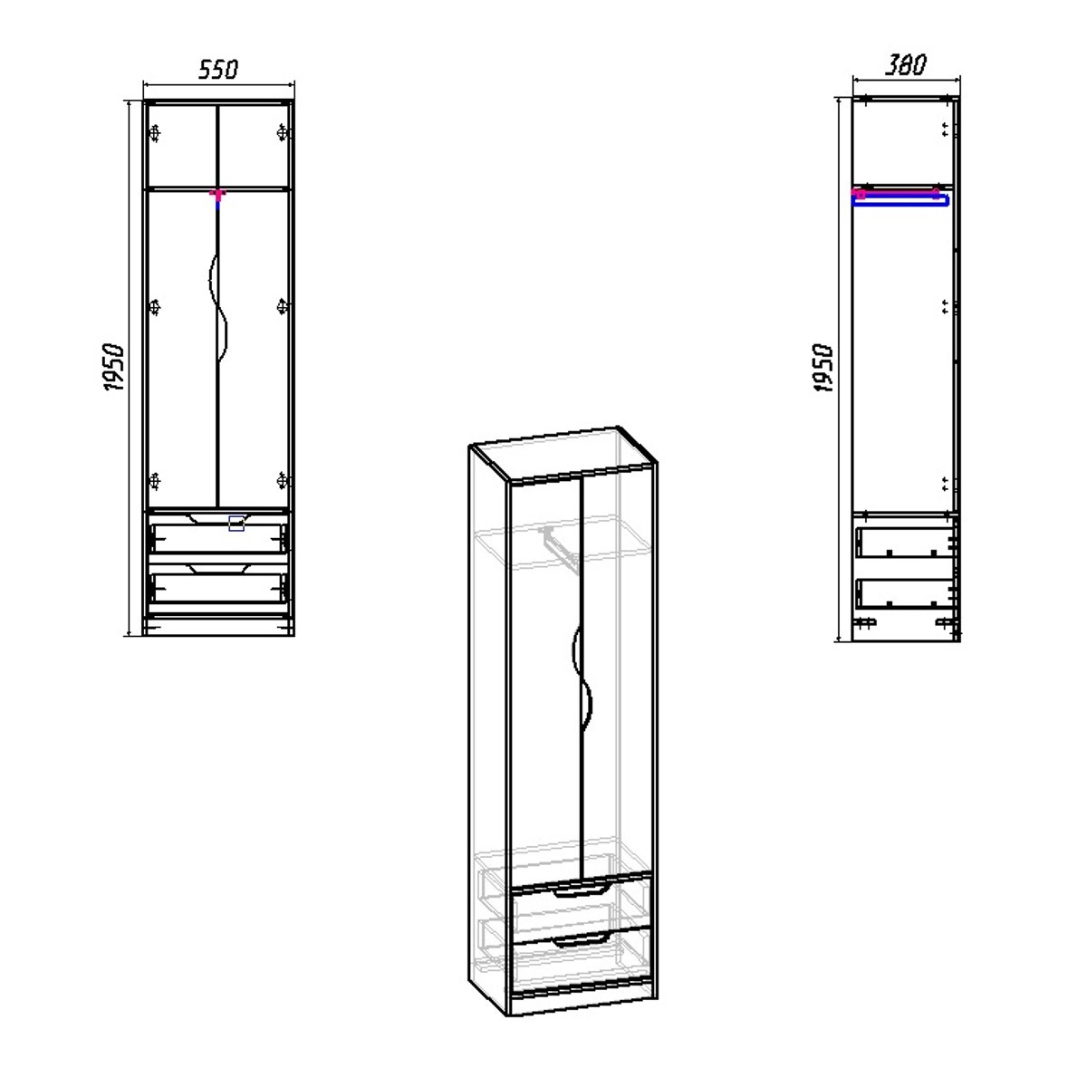 Габаритные размеры: Ширина: 550 мм. Материал: ламинированное ДСП. Цвет ДСП: Бук, Венге, Ольха, Орех Экко, Яблоня, Дуб Сонома, Нимфея Альба. Мебель доставляется в разобранном виде в плоских картонных упаковках, упакованная фабрикой производителем. В комплектацию входит фурнитура, крепёж, инструкция по сборке.