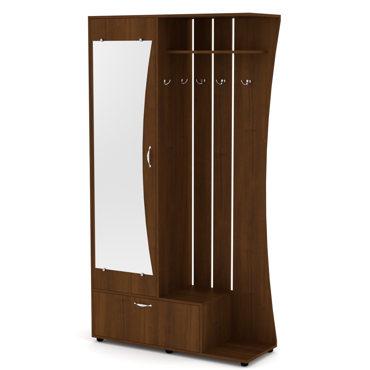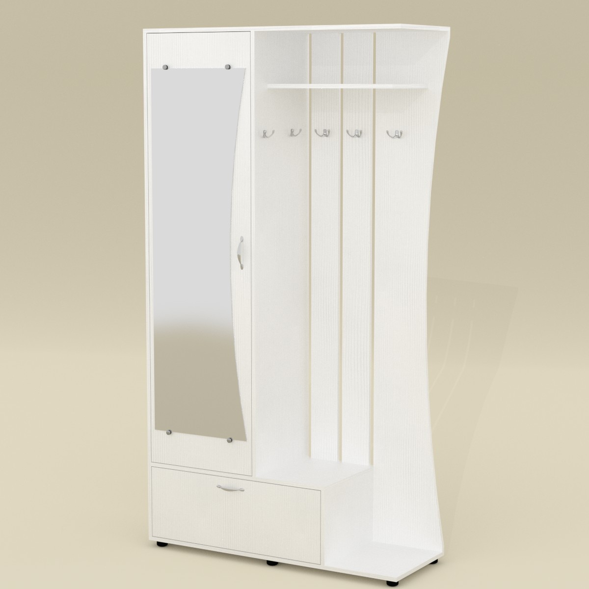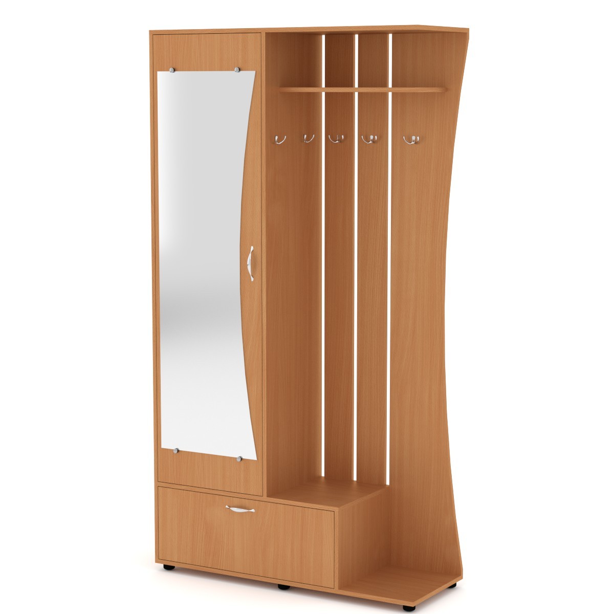 Юлия (Компанит)Чтобы аккуратно поместить верхнюю одежду и обувь, поставить сумки и зонты необходима компактная мебель для прихожей. Купить прихожую для дома или квартиры вы можете в компании КОМПАНИТ. Вашему вниманию разнообразные модели прихожих, выполненных из ламинированного ДСП в популярных цветах дерева. Прихожие имеют различную конфигурацию и габариты, чтобы вы смогли выбрать идеальный вариант для хранения необходимого объема вещей. Вешалки и полки, зеркало, выдвижные ящики и скрытые шкафчики, — теперь все вещи будут на своих местах. Габаритные размеры: Ширина: 1100 мм. Высота: 2026 мм. Глубина: 400 мм. Материал: ламинированное ДСП. Цвет ДСП: Бук, Венге, Ольха, Орех Экко, Яблоня, Дуб Сонома, Нимфея Альба. Мебель доставляется в разобранном виде в плоских картонных упаковках, упакованная фабрикой производителем. В комплектацию входит фурнитура, крепёж, инструкция по сборке.