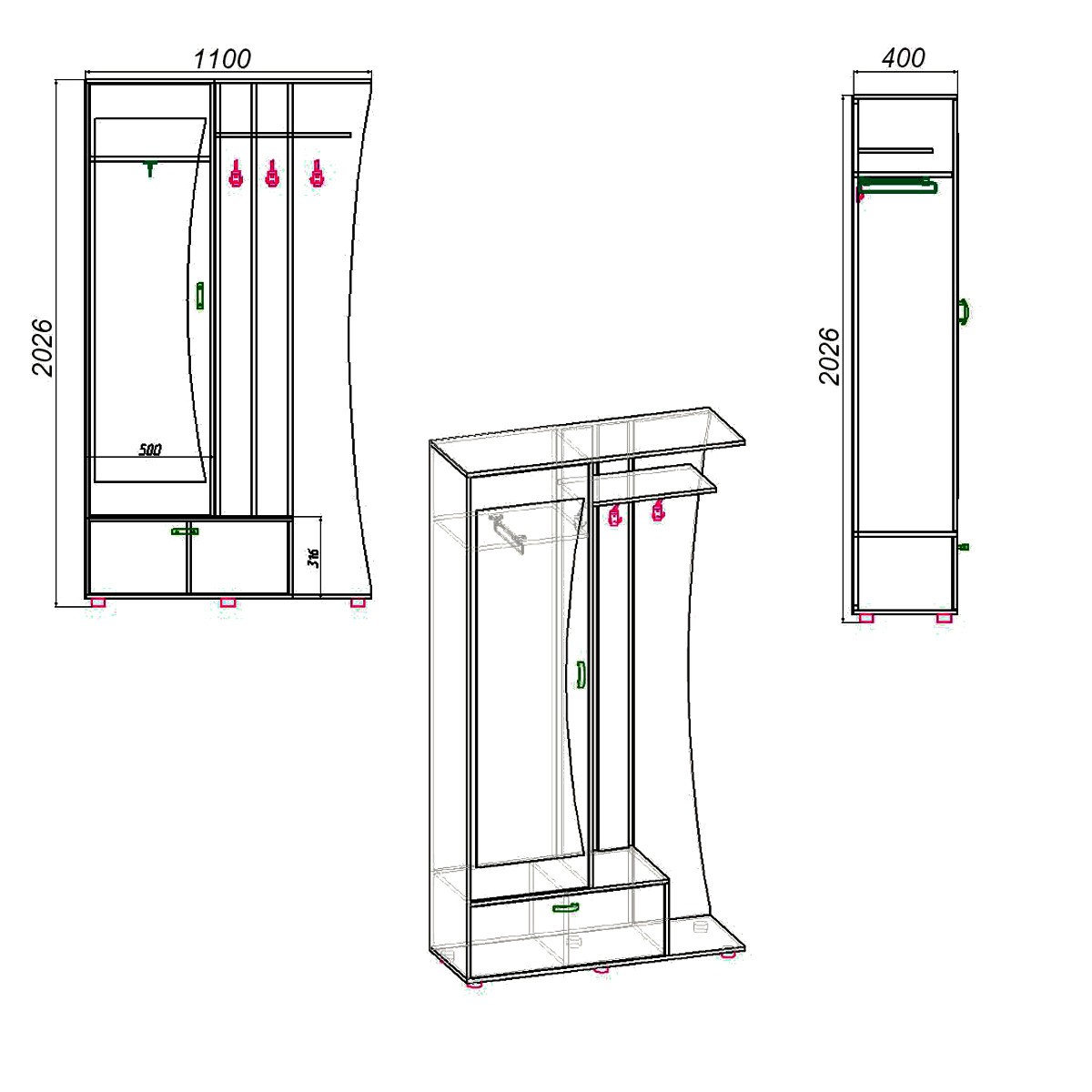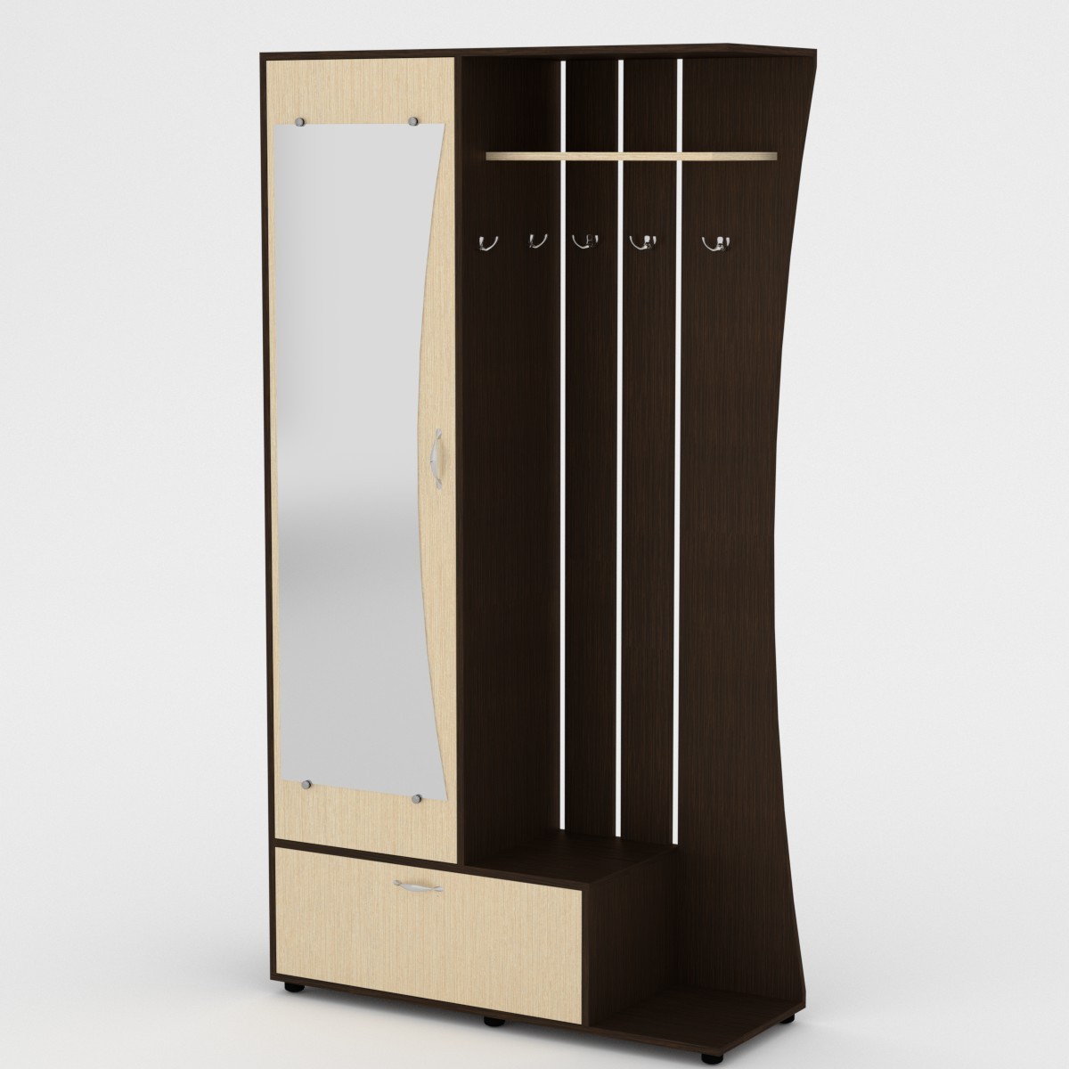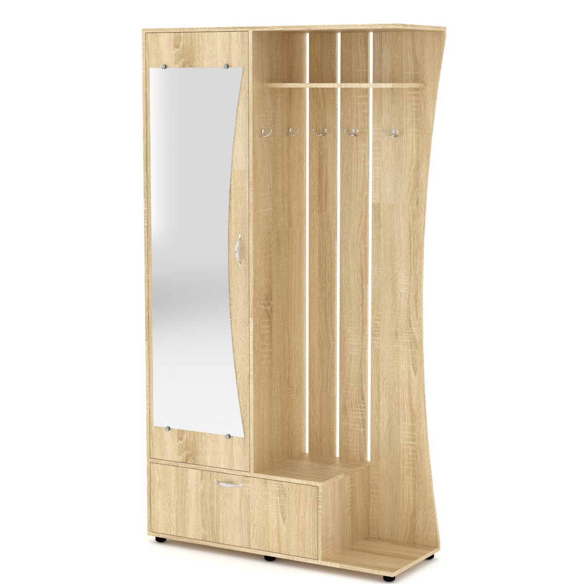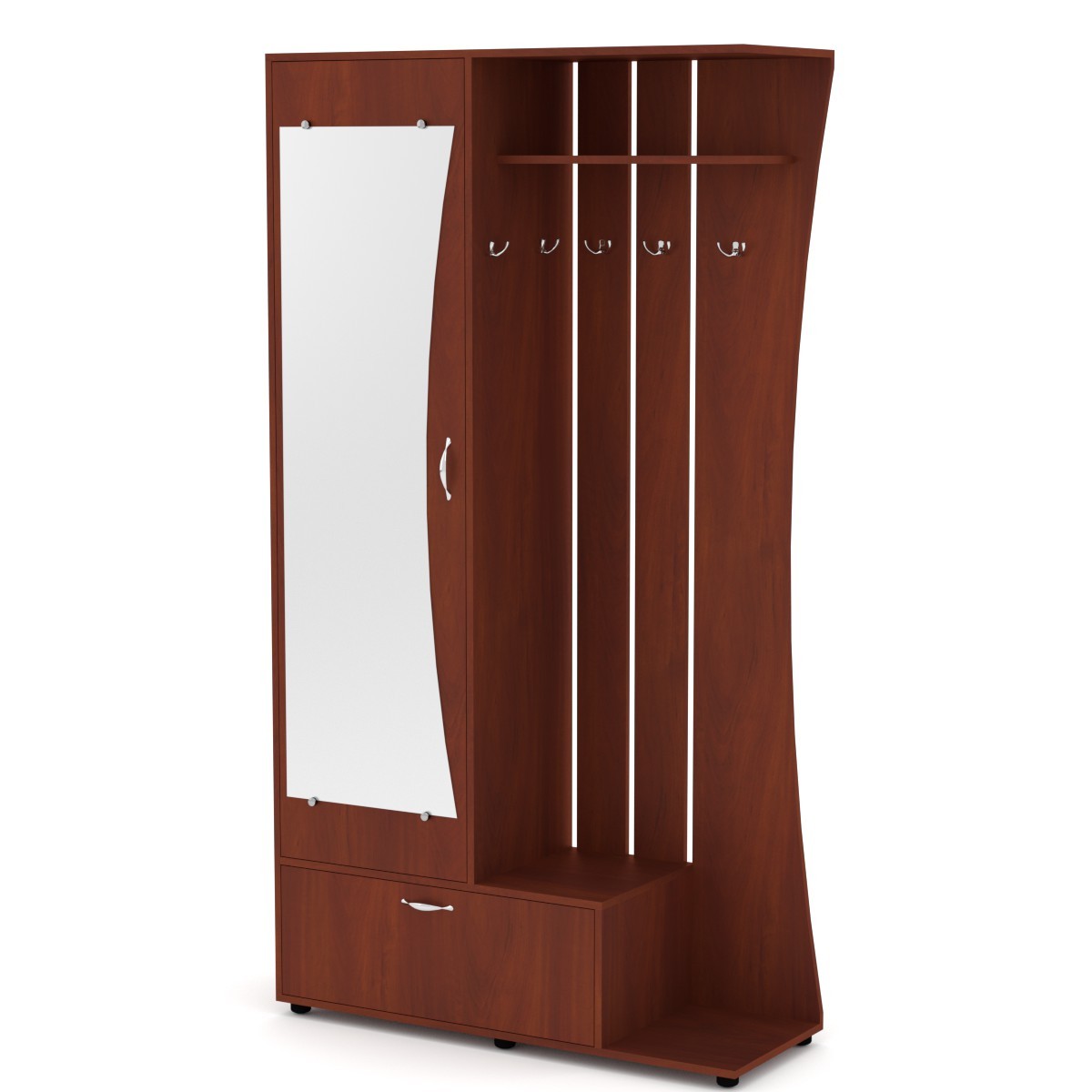 Юлия (Компанит)Чтобы аккуратно поместить верхнюю одежду и обувь, поставить сумки и зонты необходима компактная мебель для прихожей. Купить прихожую для дома или квартиры вы можете в компании КОМПАНИТ. Вашему вниманию разнообразные модели прихожих, выполненных из ламинированного ДСП в популярных цветах дерева. Прихожие имеют различную конфигурацию и габариты, чтобы вы смогли выбрать идеальный вариант для хранения необходимого объема вещей. Вешалки и полки, зеркало, выдвижные ящики и скрытые шкафчики, — теперь все вещи будут на своих местах. Габаритные размеры: Ширина: 1100 мм. Высота: 2026 мм. Глубина: 400 мм. Материал: ламинированное ДСП. Цвет ДСП: Бук, Венге, Ольха, Орех Экко, Яблоня, Дуб Сонома, Нимфея Альба. Мебель доставляется в разобранном виде в плоских картонных упаковках, упакованная фабрикой производителем. В комплектацию входит фурнитура, крепёж, инструкция по сборке.