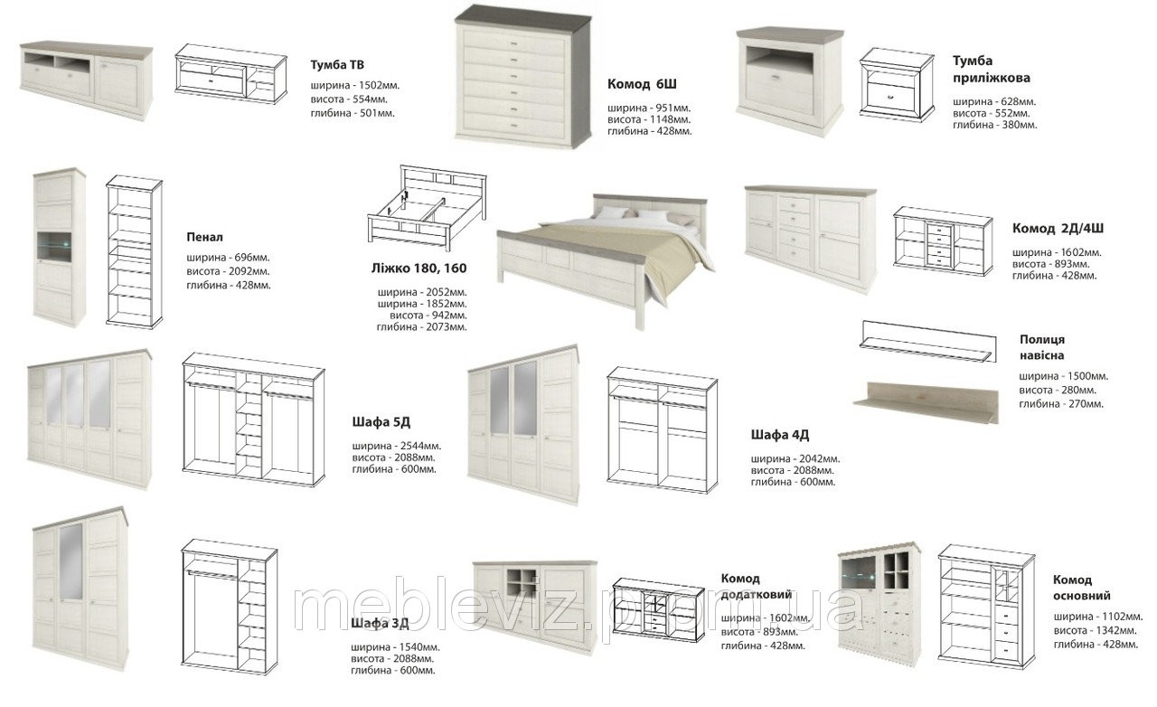 Цена указана за Пенал 1Д, комод 2Д2Ш, комод 1Д3Ш)