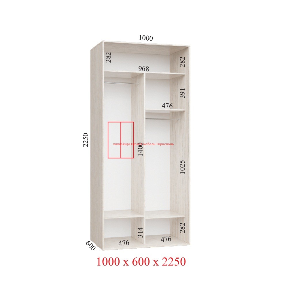 1000x600x2250 ЛЮКСПри наполнении Люкс шкафа-купе, вы можете подобрать понравившиеся вам фасады , они могут быть как классическими зеркальными, так и с полно-цветной фото-молекулярной печатью рисунка или фотографии . Технология пескоструйной обработки зеркала дает возможность нанести понравившийся рисунок или орнамент по всей поверхности зеркальных дверей шкафа . Фабричное изготовление всех компонентов, предлагаемых шкафов-купе, гарантирует более высокое качество при невысокой цене по сравнению со шкафами-купе изготовленными на заказ кустарным методом. Фирма "Феникс", с которой сотрудничает наш интернет магазин мебели "Купи-Тут", легко выполнит любые оригинальные заказы клиентов из Тирасполя и всего Приднестровья . Шкаф-купе под общей раздвижной системой может быть шириной до 5-ти метров, а высота до 2,7 метра . Используемые комплектующие : Раздвижная система Deco Цвета профиля: Серебро, Золото, Венге, Олива ![]()