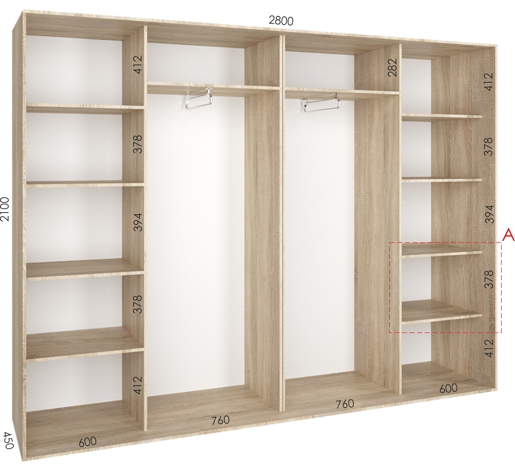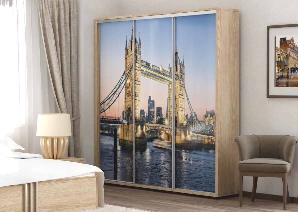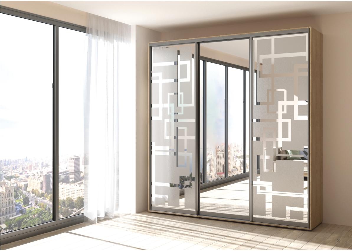 2800ммх2100ммПри стандартном наполнении шкафа-купе, вы можете подобрать понравившиеся вам фасады , они могут быть как классическими зеркальными, так и с полно-цветной фото-молекулярной печатью рисунка или фотографии . Технология пескоструйной обработки зеркала дает возможность нанести понравившийся рисунок или орнамент по всей поверхности зеркальных дверей шкафа . Фабричное изготовление всех компонентов, предлагаемых шкафов-купе, гарантирует более высокое качество при невысокой цене по сравнению со шкафами-купе изготовленными на заказ кустарным методом. Фирма "Феникс", с которой сотрудничает наш интернет магазин мебели "Купи-Тут", легко выполнит любые оригинальные заказы клиентов из Тирасполя и всего Приднестровья . Шкаф-купе под общей раздвижной системой может быть шириной до 5-ти метров, а высота до Используемые комплектующие : Раздвижная система Deco Цвета профиля: Серебро, Золото, Венге, Олива