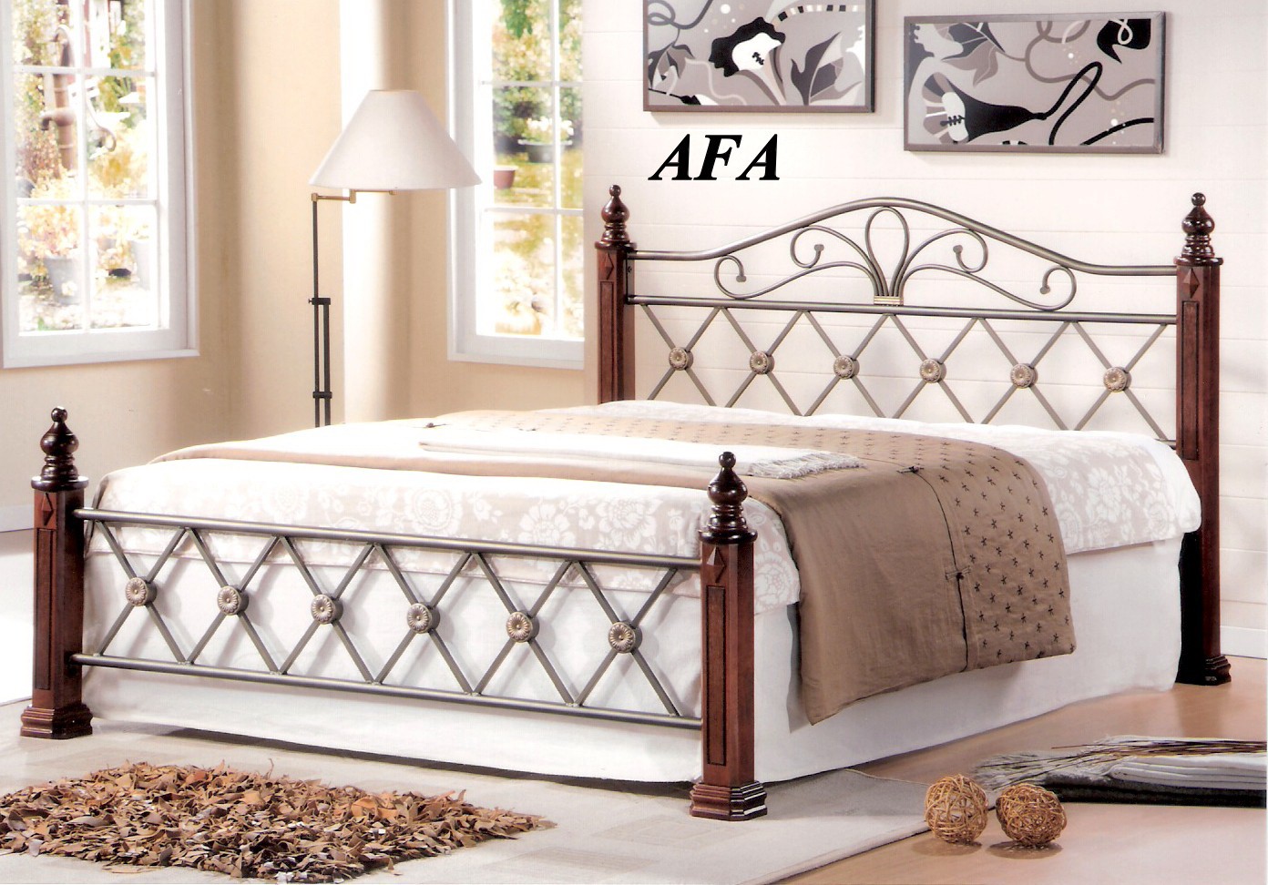 АФАСпал. место: 160*200 Описание: Кровать производства Малайзии.Материал: метал + дерево. Кровать двуспальная на металлической основе. Ножки данной модели выполнены из массива натурального дерева, боковые части включают элементы ковки. Каркас спального места выполнен из металлической квадратной трубы, окрашенной черной порошковой краской, и оборудован буковыми ламелями. Производитель: Малайзия.Изготовлена из натурального дерева гевея и окрашенного металла. С деревянной решеткой, без матраса. Металл - цвета темной бронзы.
