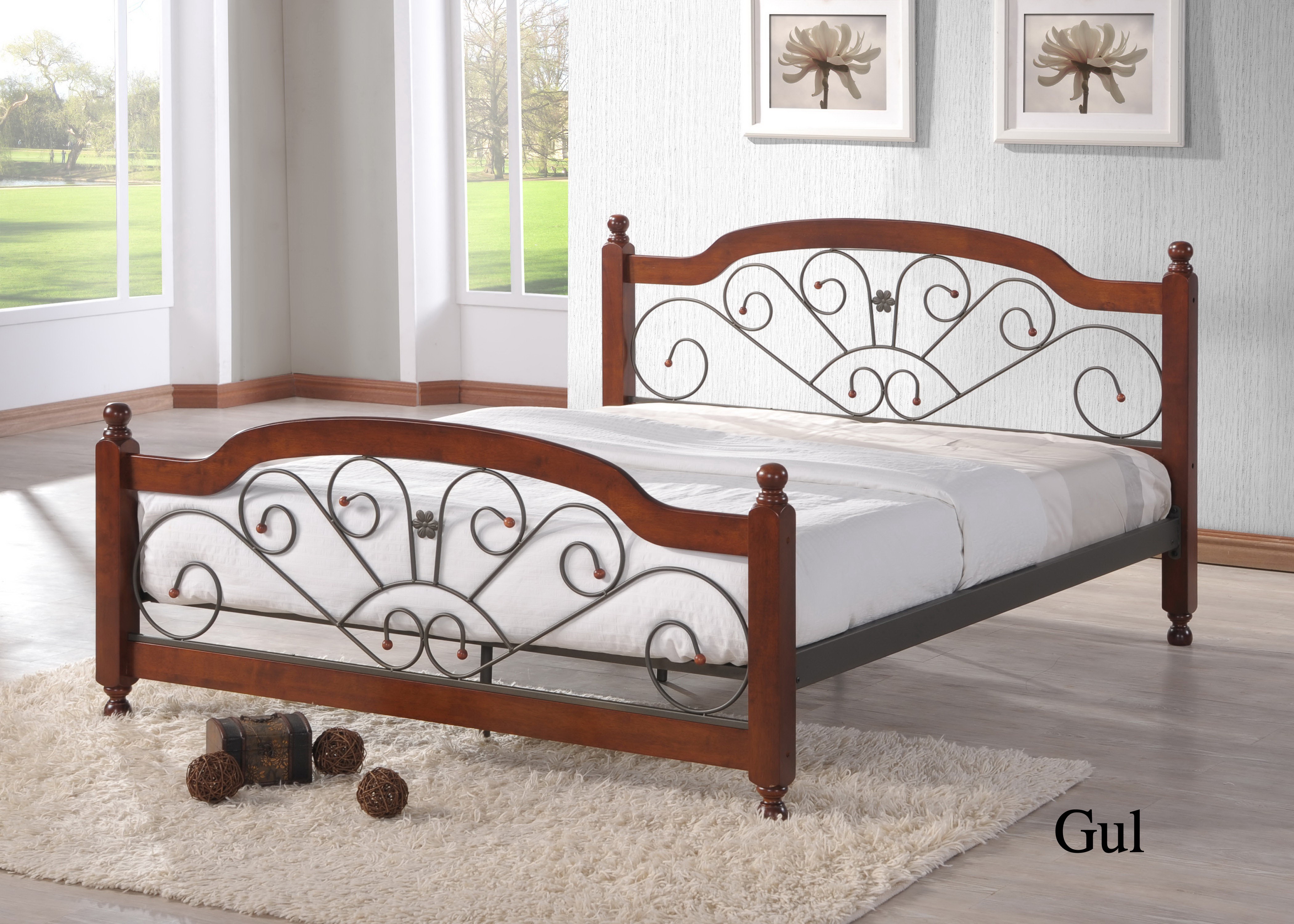 Кровать GUL малайзийского производства комбинирована из традиционных материалов – натурального дерева – и элементов кованного (литого) металла, покрываемого чернением либо окрашенного в тон комплекта. Металл в сочетании с деревом придаст интерьеру Вашей комнаты изысканности, облегченности и функциональной простоты, не лишенной изящества. Прочность такой мебели достигается благодаря металлу и дереву. Покрытие изделий многослойное и эксклюзивное, с соблюдением всех современных требований. Благодаря современным технологиям вес кровати на удивление небольшой, что позволяет свободно перемещать её по комнате и не опасаться за сохранность пола. Кровать, декорированная коваными деталями изголовья и изножья, кажется почти невесомой и ажурной. Особенно оригинально смотрится весь гарнитур, оформленный с наличием металлических деталей.
