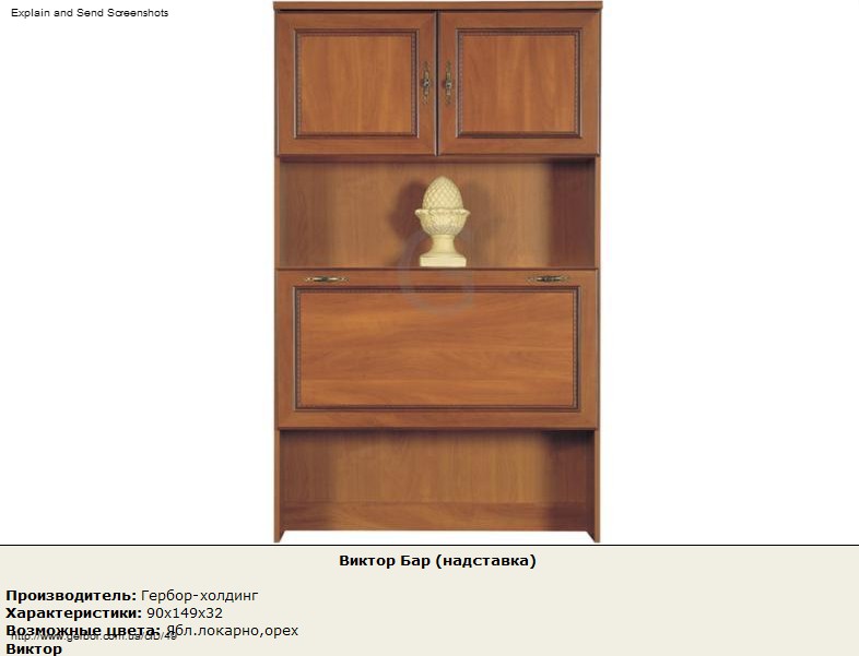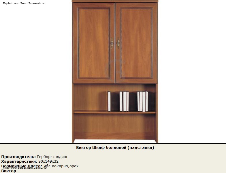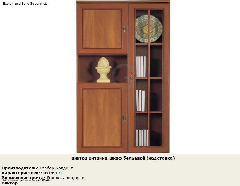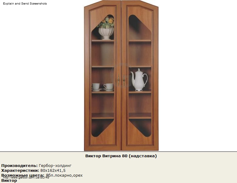 Модульный комплект Виктор GERBOR поможет изготовить многогранный, классический интерьер. Разные формы карнизов, характерная классическая ручка и гравированная каемка, которая украшает рамы фасадов и придают мебели изысканность. Мебель Виктор, подойдет как для гостиной, так и для кабинета. Набирается поэлементно Состоит из 15 элементов. В 2-х вариантов цветов:орех и яблоня-локарно.