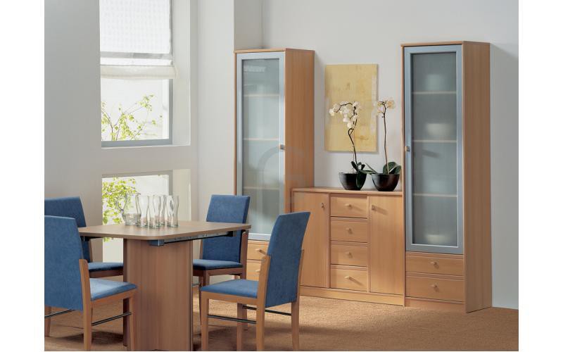 Сколько будет стоить такая система - шкаф 2-дверный с 2-мя шуфлядами, комод (такой как на фото с синими стульями), пенал с матовым стеклом.