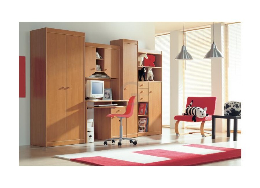 ЮниорЮниор - мебельный комплект для детской и подростковой комнаты. Изделие выполненно из ламинированного ДСП. Производитель: фабрика мебели Gerbor (Гербор). Размеры детской мебели Юниор Gerbor: Детская стенка Юниор состоит из: двух-створчатого платяного шкафа с верхней полкой, компьютерного стола с выдвижным ящиком и дверцей, надставки на компьютерный стол с двумя отделениями и тремя полками посередине, двух-створчатого бельевого шкафа с четырьмя полками, одностворчатого шкафа с полкой сверху, тремя выдвижными ящиками посередине слева и закрытым отделением для белья с двумя полками.