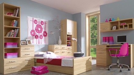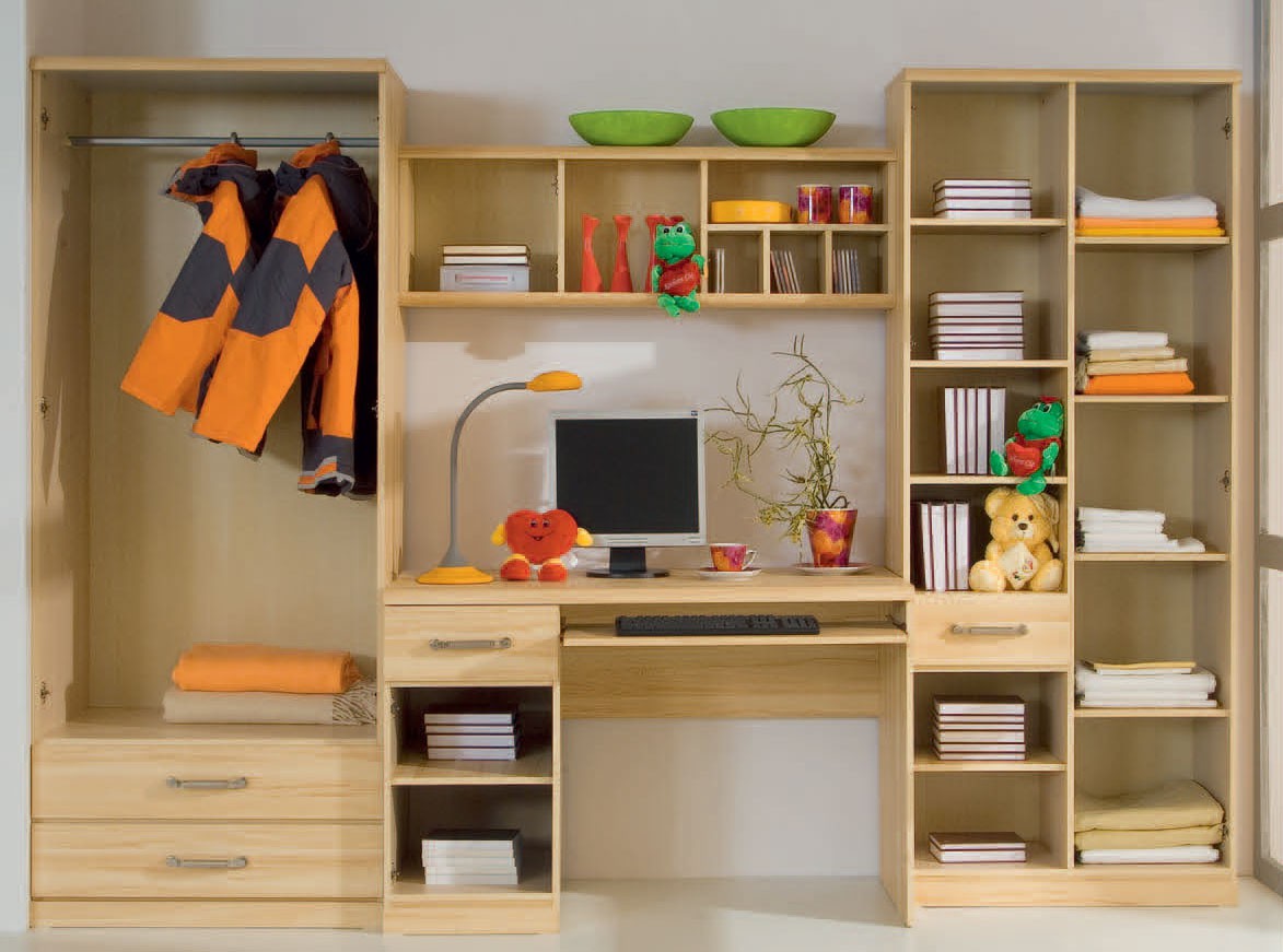 Светлый тон мебели радует не только Ваш глаз, но и визуально добавляет комнате пространство и легкость. Многофункциональность шкафов (множество полок, выдвижных ящиков) порадует не только Вашу модницу, но и любознательного мальчугана. Материал: ламинированная ДСП. Цвет: бук татра. Цена указана за набор мебели: Шкаф платяной, Стол письменный, Полка, Шкаф комбинированный. Цены на остальные элементы уточнить по телефону.