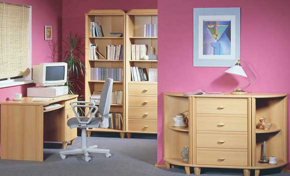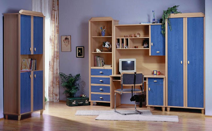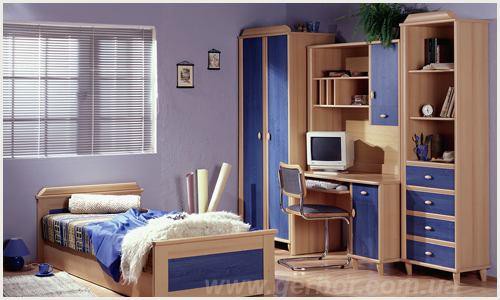 Цвет корпуса: бук Цвет фасада: ольха синяя, бук. Цена указана за набор мебели: Шкаф, Кровать 90 (каркас), Комод 60, Стол письменный. Цены на остальные элементы уточнить по телефону.