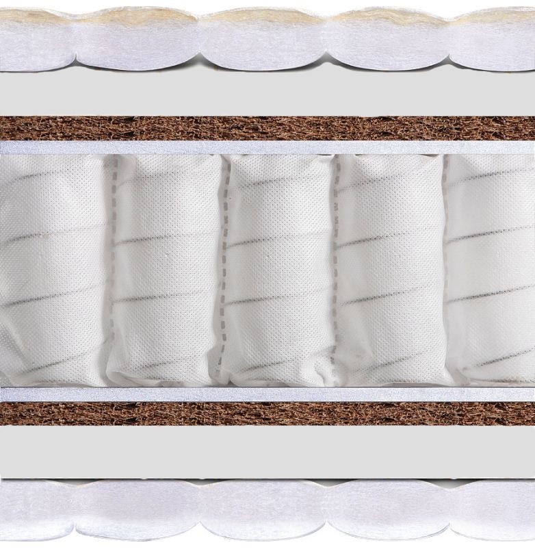 Матрац Рио плюсМатрас Rio Plus - Универсальная комфортная модель, разработанная на основе многолетних исследований, которая объединяет в себе свойства сразу двух матрасов – жесткого и мягкого. Натуральный наполнитель из кокосовой койры с одной сторон матраса увеличивает его жесткость и упругость, а пенополиуретан с другой стороны – гарантирует комфортный отдых на мягком ложе. Блок независимых пружин Pocket Spring шахматной сборки обеспечивает точечное распределение нагрузки, что улучшает ортопедические свойства модели. Матрас создает оптималь-ный температурный режим, снабжен «аэраторами» для проветривания. Модель подходит для тех, кто не определился с предпочтительной степенью жесткости или любит разнообразие. Двусторонний ортопедический матрас с разной степенью жесткости по обеим сторонам, что дает возможность выбора более предпочтительной из них. Жесткость: 1 сторона – IV / 2 сторона – II Нагрузка: 120 кг (одно спальное место) Высота: hmin = 20 см / hmax = 22 см Состав матраса Rio Plus: Стрейч-жаккард / Пенополиуретан высокой плотности / Кокосовое волокно / Спанбонд / Блок независимых пружин Pocket Spring / Еврокаркас / Спанбонд/Спандбонд / Кокосовое волокно / Пенополиуретан высокой плотности / Стрейч-жаккард