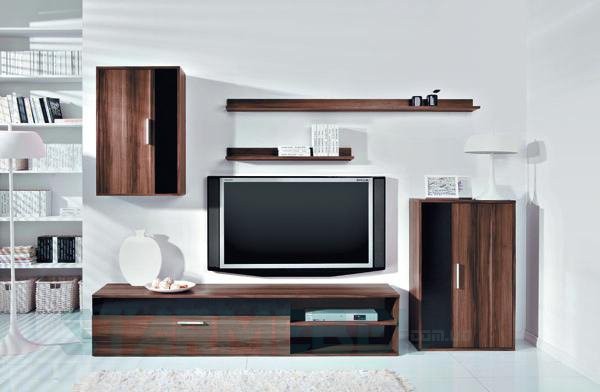 Стенка "Барато" продаётся комплектом: тумба под ТВ, шкафчик навесной, две полки открытые и тумба напольная. Цена указана актуальная