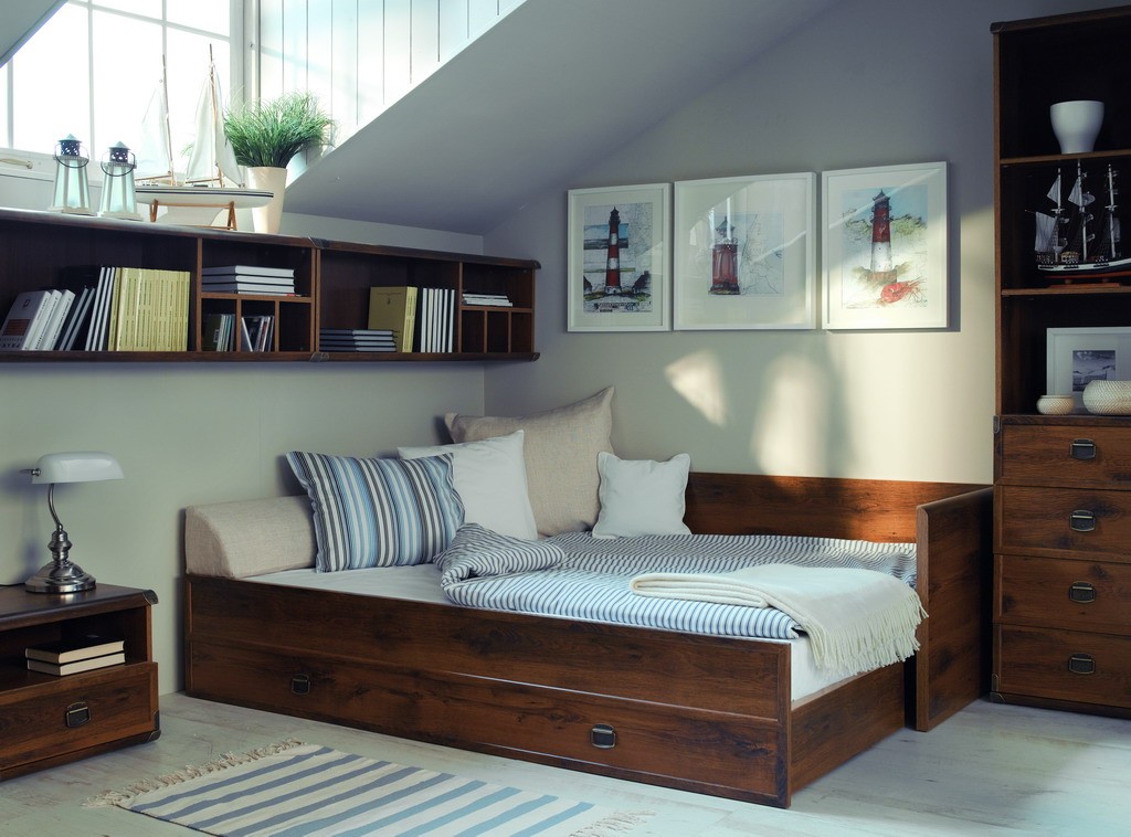 Мебель Indiana БРВ в стиле дикого запада, интересные формы ручек и фурнитуры, два цвета корпуса и фасадов. Диван разкладывающийся в кровать, сундуки и комоды разной величины, сделают комнату индивидуальной и оригинальной. Модульная система Indiana brw идеально подходит для детской комнаты или гостинной.
