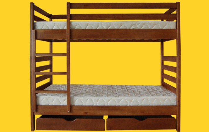 Кровать Трансформер-1Трансформер 1 - это модель деревянной кровати от торговой марки Тис, выполнена в классическом стиле из натуральных материалов. Кровать легко трансформируется из двухъярусной кровати в две одноместные! Для изготовления используется щит дуба, сосны или бука на Ваш выбор. Размеры двухярусной кровати под матрац: 80х190см., 90х200см Двухярусную кровать можно трансформировать в две одноярусные кровати Дерево: сосна, бук, дуб. Цвета: лак, ольха, орех, махонь, венге. Цена за 1 шт. шухляд- 42у.е Цена указана за кровать Трансформер 1 (80*190см) материал дерева сосна (без матрацев).
