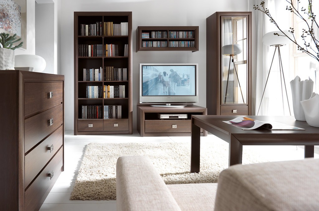 видео системы КОЕН Цена указана за комплект мебели: Комод 4S, Стеллаж открытый, Тумба TV, Полка, Витрина.