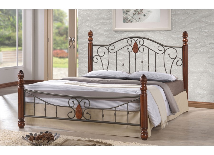 Агнес AgnesСтильная кровать из металла, изголовье выполнено в технике художественная ковка, опоры изготовлены из дерева гевеи. Металл в сочетании с деревом придаст интерьеру Вашей комнаты изысканности, облегченности и функциональной простоты, не лишенной изящества. Каркас спального места выполнен из металлической квадратной трубы, окрашенной черной порошковой краской, и оборудован буковыми ламелями. Страна производитель: МалайзияДлина: 210 см Ширина: 170 см Спальное место: 160*200 см Цвет дерева: орех Металл: рустикаль