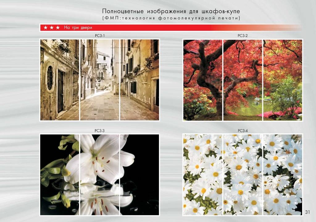 При стандартном наполнении шкафа-купе, вы можете подобрать понравившиеся вам фасады , они могут быть как классическими зеркальными, так и с полно-цветной фото-молекулярной печатью рисунка или фотографии . Технология пескоструйной обработки зеркала дает возможность нанести понравившийся рисунок или орнамент по всей поверхности зеркальных дверей шкафа .
