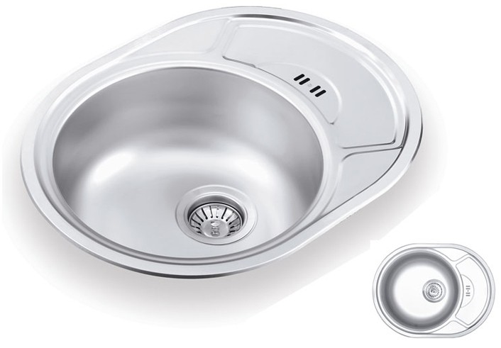 МОЙКА FAL 577.447 GW 8K ВРЕЗНАЯ UKINOX ТОЛЩИНА 0.8 ММКухонная мойка с круглой чашей и крылом с переливом для воды, для тумбы от 50 см. Толщина металла: 0,8 мм Размеры чаши: Ø 360 мм Глубина мойки: 190 мм Расположение чаши: по центру Стандартная комплектация: мойка, крепежи, уплотнительная лента. Перелив для воды: в крыле