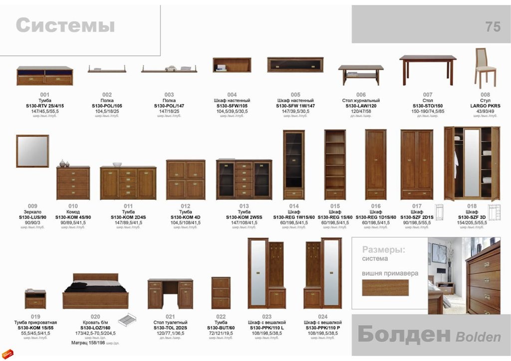 БРВ мебель BOLDEN - ещё одна коллекция мебели BLACK RED WHITE для приверженцев классического стиля в интерьере. Рассчитанный на все слои населения, набор BOLDEN позволит создать оригинальные уютные композиции для прихожей, гостиной, столовой и спальни. Изящная фурнитура, используемая при оформлении полок, придаст утонченность и легкость интерьеру. Бронзовое стекло в витринах гармонично сочетается с насыщенным цветом вишня примавера, в котором выполнены все 23 элемента набора.