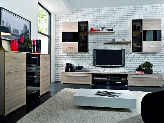 Привлекает внимание контрастным сочетанием цветов и фактур. Цвет «дуб сонома», придающий ощущение натуральности и экологичности, уравновешивается черным глянцем, вносящем насыщенности и яркости. Темная окантовка стекол витрин придает мебели Соматик BRW изысканность. Продолговатые ручки подчеркивают стильную сдержанность коллекции. Выполненная в минималистическом стиле мебель Somatic БРВ отлично впишется в любой интерьер гостиной.