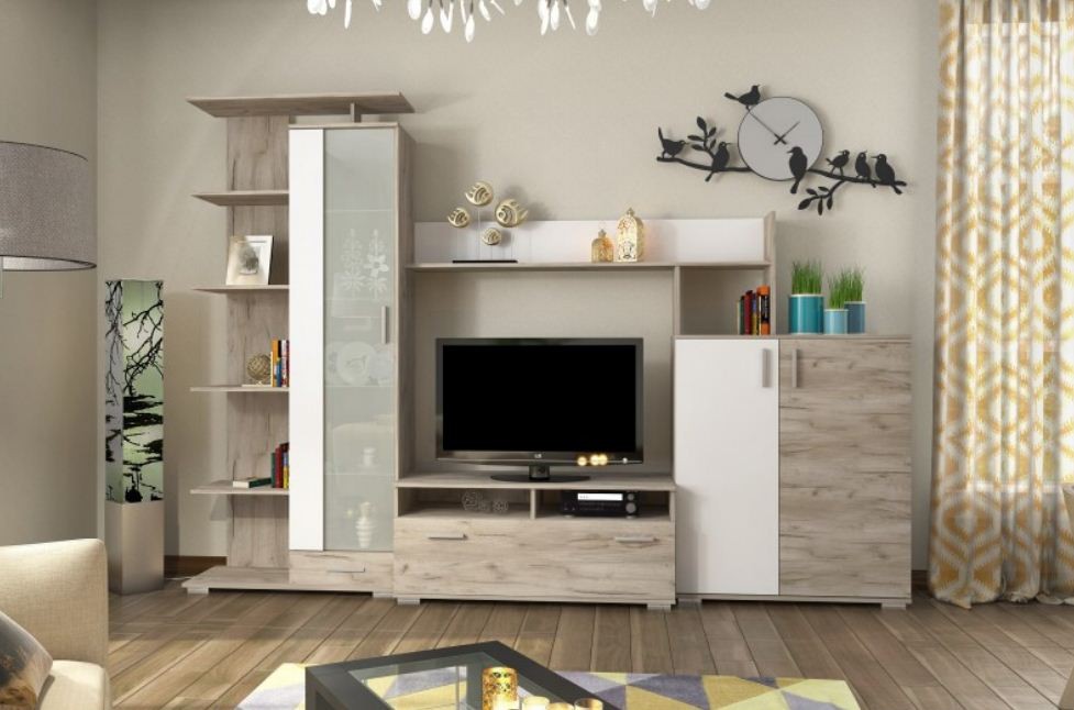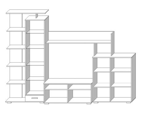 Гостиная Поло PoloРазмер гостиной Поло: Ширина: 290 см; Глубина: 37-46,5 см; Высота: 206 см; Размер ниши для ТВ: Ширина: 110 см; Глубина: 46,5 см; Высота: 86 см. Материал корпуса:ламинированная ДСП Материал фасада:ламинированная ДСП Выпускается в цвете: корпус - дуб крафт белый, фасад - темное дерево; корпус - дуб крафт серый, фасад - белый. Гостиная Поло - удачное сочетание оригинального дизайна и функциональности. Несмотря на достаточно компактные размеры, гостиная Поло довольно вместительна. За фасадами из ламинированного ДСП и стекла скрывается множество полок, на которых удастся разместить немалое количество разнообразных вещей. Не будет тесно и теле- и аудио- аппаратуре, для которой предусмотрены соответствующие места. Размер ниши для ТВ: высота - 86 см, ширина - 110 см. Гостиная обладает также открытыми полками и выдвижными ящиками. Ширина290 см