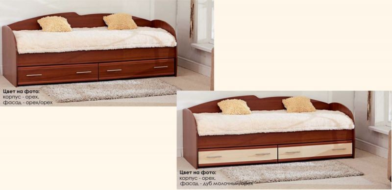Кровать К-117 Комфорт мебельной фабрики Комфорт это замечательное решение для детской комнаты. Кровать подойдет под любой дизайн - у нее много вариантов цвета, есть два выдвижных ящика для хранения вещей. В стандартном варианте основой под матрас является - ДВП. За дополнительную плату можно заказать кровать с буковыми ламелями.