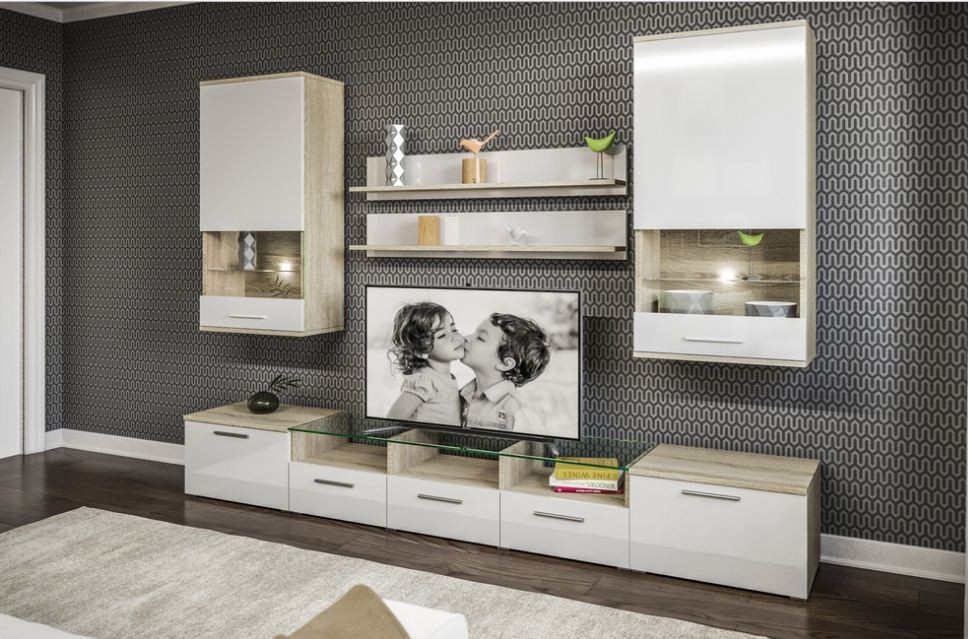 Размеры: Ширина: 2700 мм Высота: 1550 мм Глубина: 420 мм Место под ТВ: ширина-1500 мм глубина-420 мм Cтенка Денвер Світ-Меблів-современная мебельная стенка, которая создает в Вашей гостинной атмосферу комфорта и универсальности. Cтенка Денвер Світ-Меблів-уникальностью данной мебели, является тумба ТВ под. стеклом а верхние секции визуально расширяет пространство.