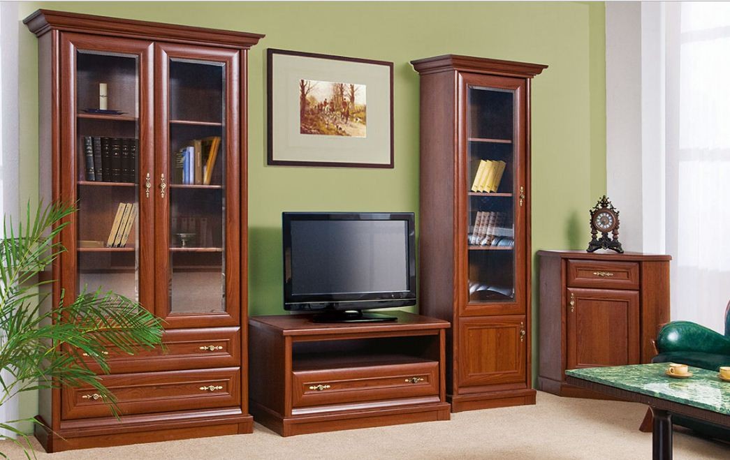 Модульная система "Кантри", производство фабрики Svit Mebliv (Світ Меблів), Украина. Выпускается в цвете: "каштан". Корпус изготавливается из ДСП, рамочный фасад - МДФ. Ручки - цвет "латунь". Витрины с прозрачным стеклом. Коллекция Кантри характеризуется классическим дизайном, резными карнизами и цоколями, благородным оттенком, утонченной фурнитурой, а также функциональностью модулей и высоким качеством изготовления, что делает ее идеальным вариантом для создания уютного, красивого и практичного интерьера.