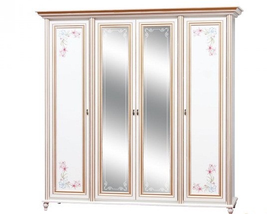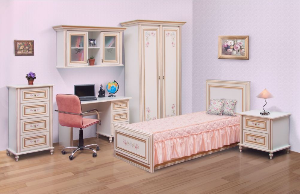 Модульная детская Сорренто Sorrento производство фабрики Світ Меблі, Украина. Коллекция мебели Сорренто - это изысканные классические формы, роскошное цветовое решение и великолепие декора. Стильный дизайн, высокое качество исполнения и функциональность модулей делают эту мебель идеальным вариантом для создания красивого и практичного интерьера. Мебель Сорренто изготовляется из материалов: Корпус – ДСП ламинир.; Фасад – МДФ. Производится в цвете: Корпус – прованс светлый;Фасад прованс светлый с золотой патиной и декоративными рисунками. Зеркала и стекла с художественной обработкой