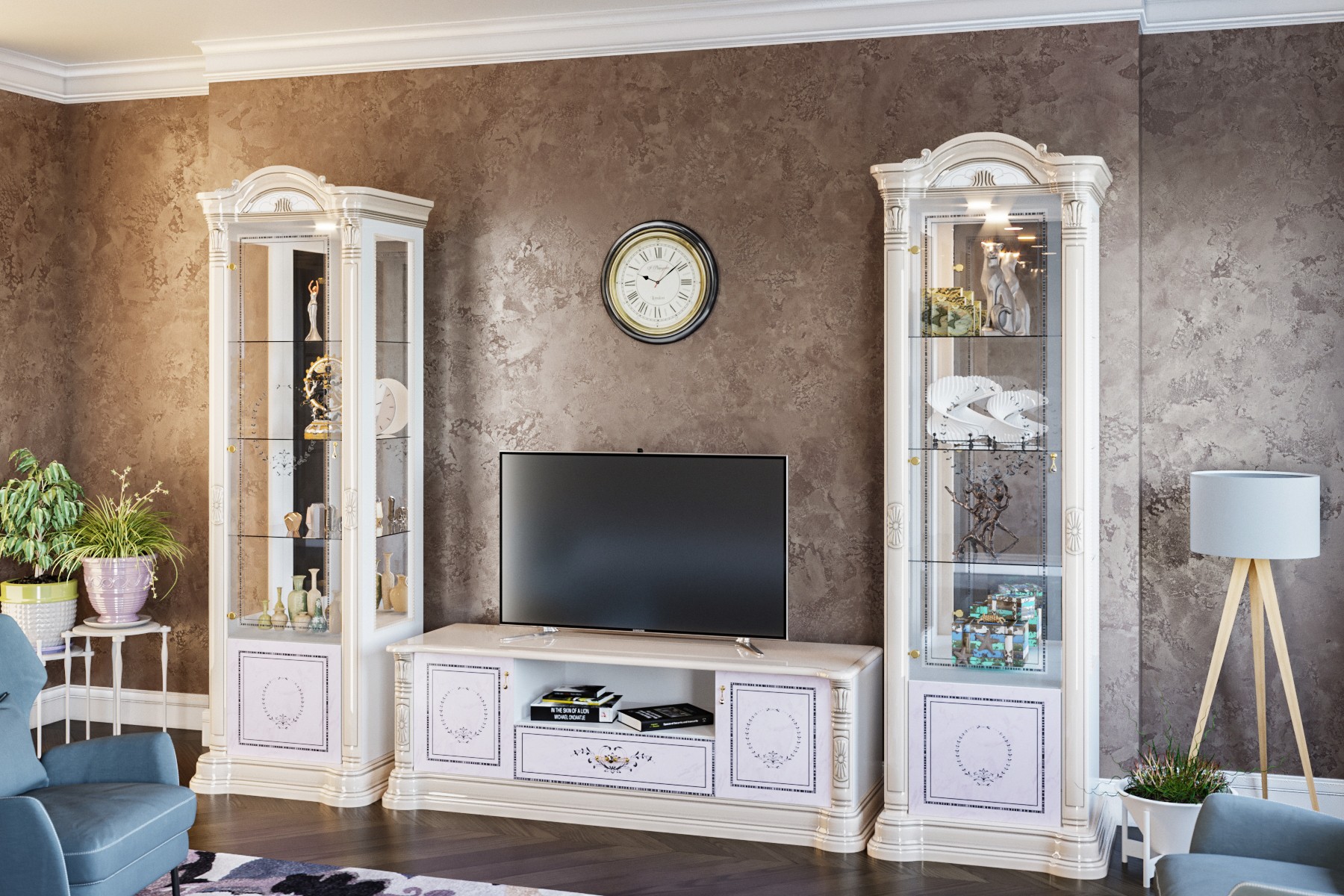 При оформлении заказа Гостиной Вивальди, Вы можете убрать или добавить другие элементы из модульной системы Вивальди. Цена указана за набор фото 1(Витрина 1Д (2шт), Тумба ТВ). Цену на отдельные элементы уточните по телефону или email.