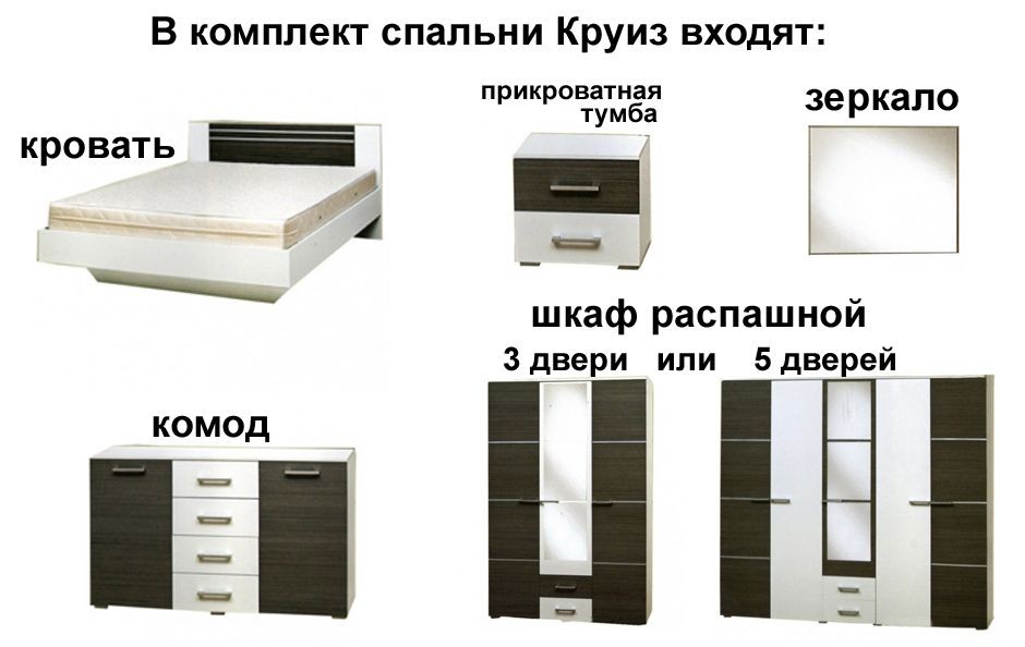 Цена указана за набор мебели: Круиз 3Д (б/матраца, б/подставки). Цены на отдельные элементы уточнить по телефону или email