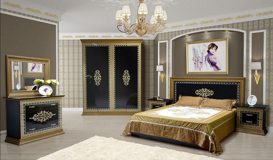 Спальня 4Д СОФИЯ ЛЮКС СВІТ МЕБЛІВ – комплект мебели в спальню модульной системы Sofia Luxe Svit Mebliv . Изготавливается в двух цветовых решениях (корпус / фасад): белый / белый глянец и черный / черный глянец с изумительной художественной печатью на фасадах. Характеризуется изысканным, слегка вычурным дизайном, напоминающим интерьер дворцов периода барокко, оригинальными ручками и стилизованными под позолоту карнизами и цоколями.