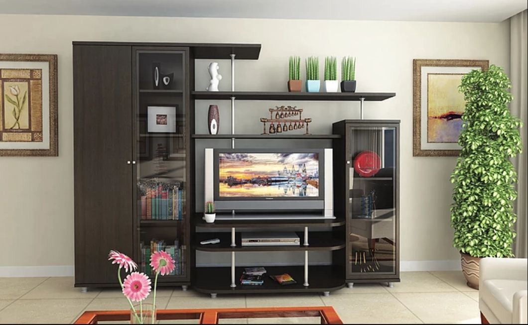 Стенка "Рио-3" – шик и блеск современного города. Обилие стекла, хромированных деталей, просторных полочек и ниш. Максимально открытый, визуально легкий гарнитур. Современный дизайн, стильный и смелый, выполненный в духе настоящего.