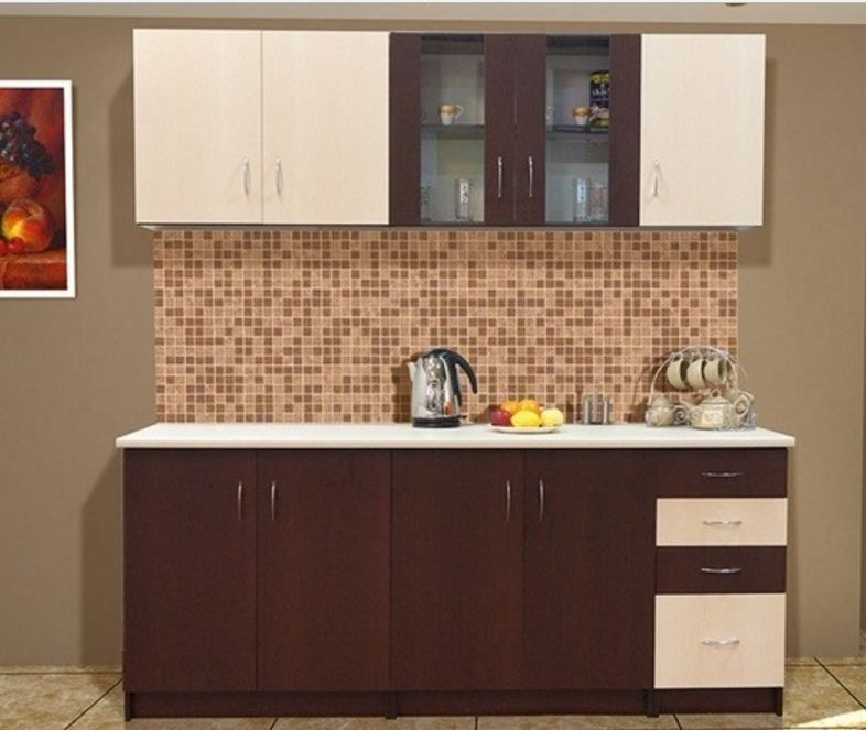 Кухня Венера VeneraКухня производится в комбинации цветов: корпус – венге темный, фасад – венге светлый. Мебель Венера изготовляется из материалов: корпус и фасад – ДСП.Варианты изготовления: П 2,0 м; П 2,6 м; 2,0 м; 2,6 м; ЦЕНА УКАЗАНА для кухни 2м, без учета стоимости столешницы. Цену на кухню 2,6 м уточните по телефону. Поэлементно не продаётся.