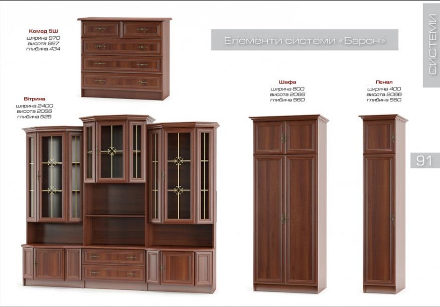 Стенка "Барон" - ощутите истинный комфорт, познайте преимущества элитной мебели. Оригинальный гарнитур, элегантный и респектабельный. Лучшие традиции классического стиля, незабываемое удобство и функциональность. Это именно та мебель, которая достойна украсить Ваш дом, создать атмосферу подлинной красоты и роскоши.
