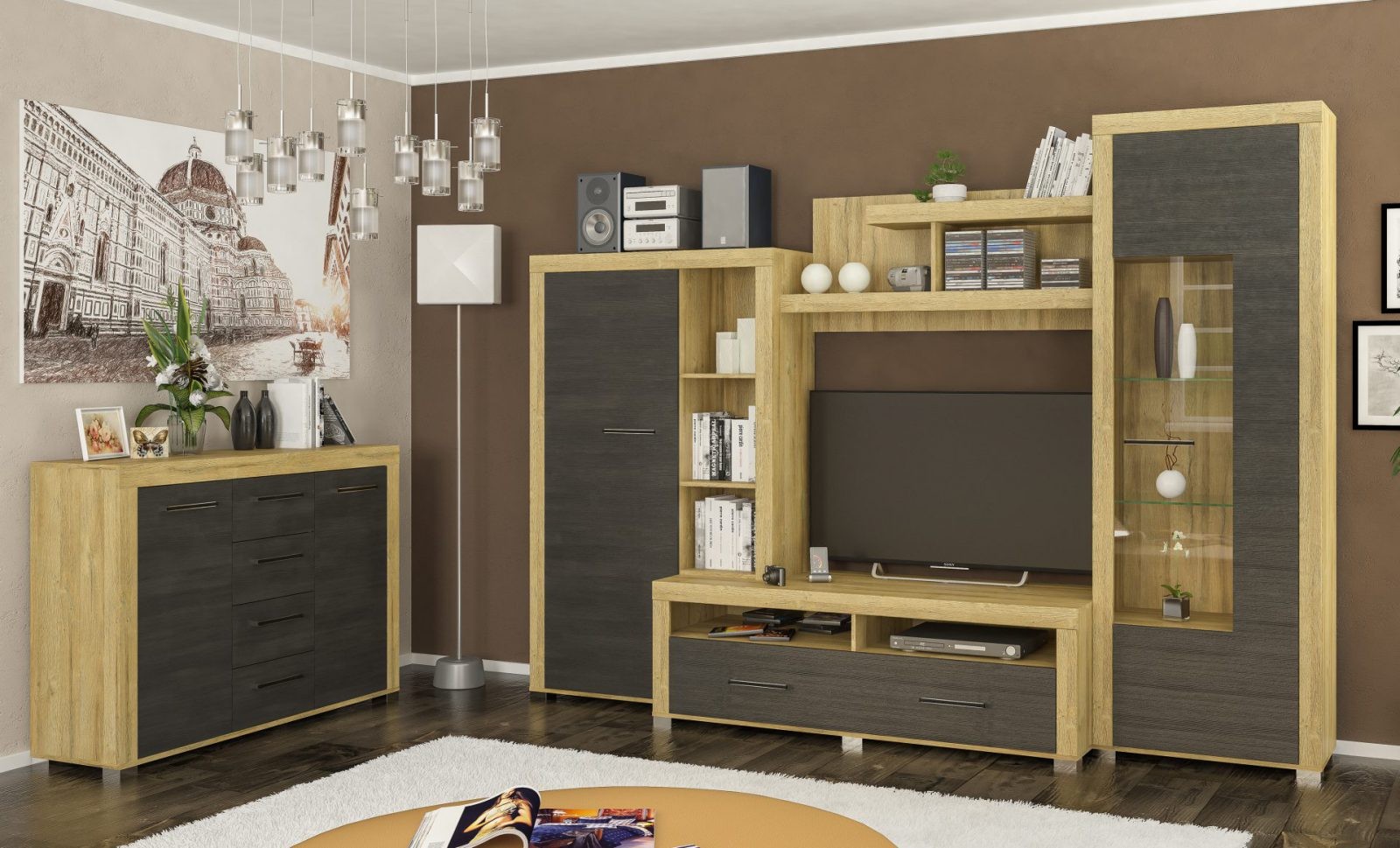 Гостиная Неон 1 северное деревоСтенка в гостиную "Неон-1" от производителя "Мебель-Сервис" удивит вас не только своей компактностью и оригинальностью дизайна, но и доступной ценой. Стенка "Неон ― 1" - мебельная стенка в стиле хай-тек. Отличный вариант для домашнего кинотеатра. Характеристики: Ширина: 300 см. Высота: 218 см. Глубина: 59 см. Ниша под ТВ :высота 99,6 см./ширина 119,5 см. Цвет : Корпус: венге или дуб золотой. Фасад: северное дерево. Цена указана за гостиную без комода. Цену комода уточните по телефону или email.