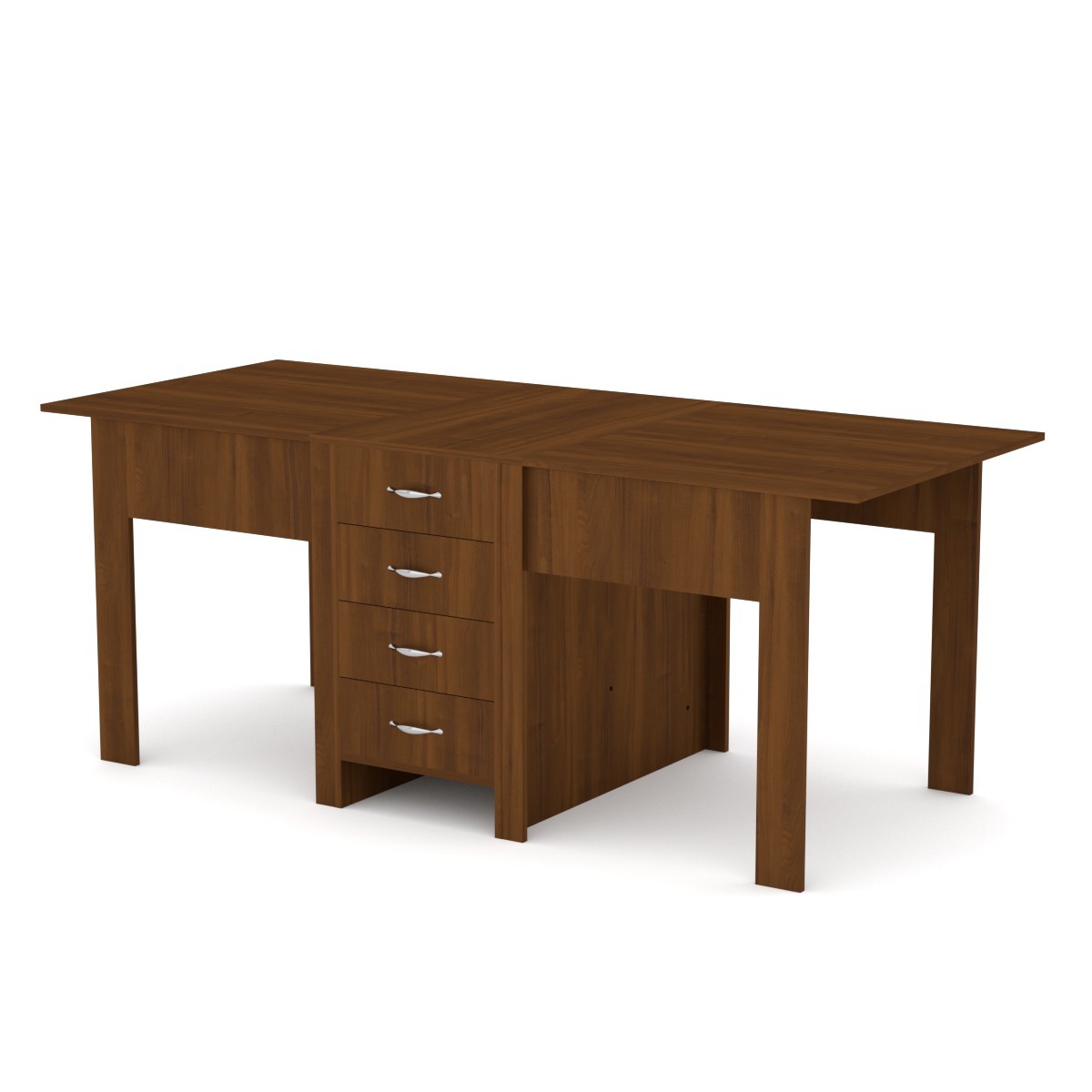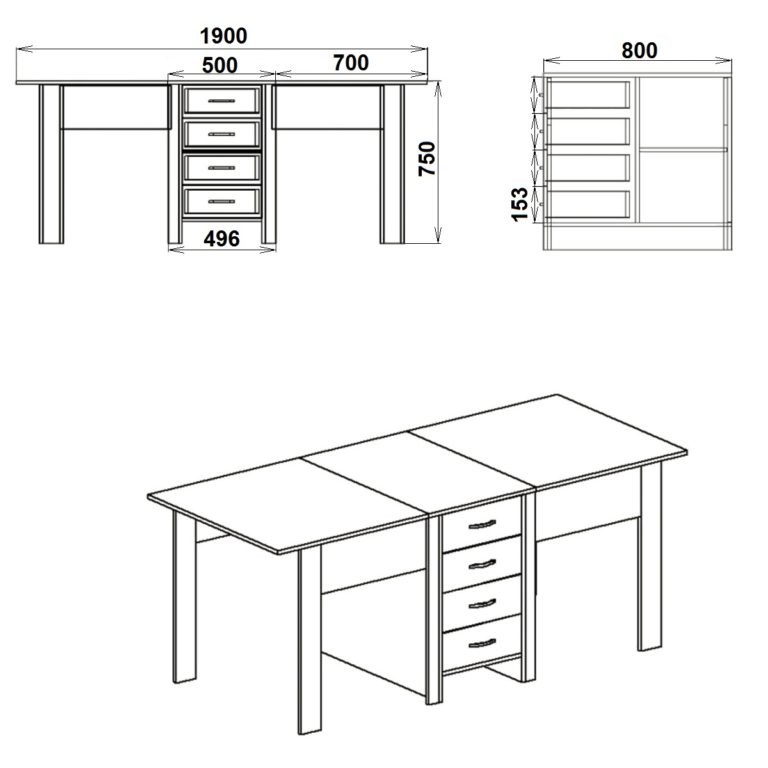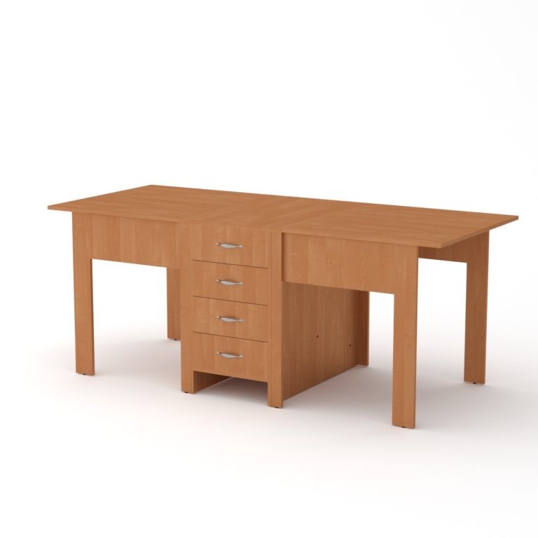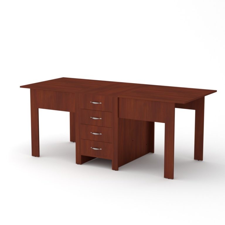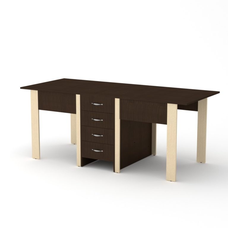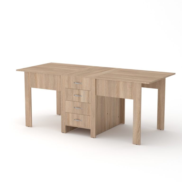 Стол-книжка 3Раскладной стол книжка- это хорошее решение для кухни или гостиной комнаты. Основное преимущество компактность и трансформация. В сложенном состоянии занимает очень мало места, а в разложенном равен или превышает габариты стационарных обеденных столов. Габаритные размеры: Ширина: 800 мм. Высота: 750 мм. Глубина: 532 мм. В разложенном виде: 1900 мм. Материал: ламинированное ДСП. Цвет ДСП: Бук, Венге, Ольха, Орех Экко, Яблоня, Дуб Сонома, Нимфея Альба.